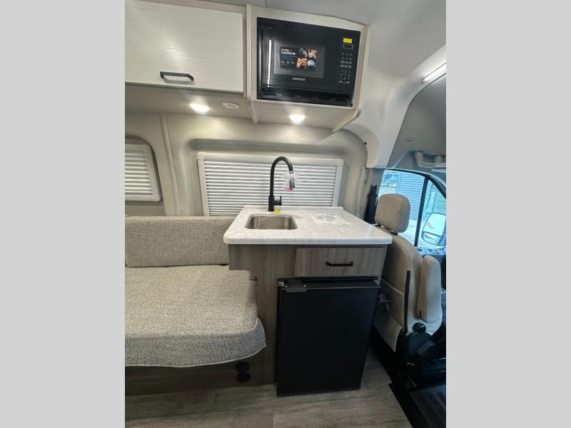 Experience the freedom of the open road with this incredible Class B motorhome! It features a rear bathroom with a closet, perfect for freshening up after a long day of adventure. The two 51" x 74" twin bed sleeper sofas provide comfortable sleeping space for up to four people. The kitchen is equipped with everything you need to whip up a delicious meal, including a microwave, refrigerator, and single-burner portable cooktop. You can also enjoy the great outdoors with the 10’ awning, perfect for relaxing in the shade or entertaining friends and family. Ideal for solo travelers, couples, or small families.