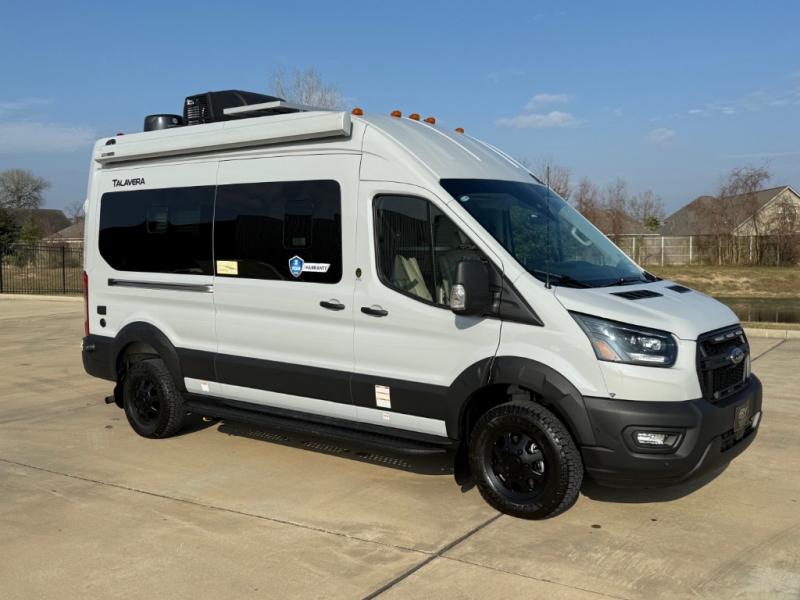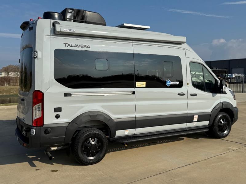 Each Thor Motor Coach Talavera Class B gas motorhome is the ultimate choice for those looking for outdoor adventures. The Ford Transit Trail™ AWD chassis with a 3" body lift, wider track, black alloy wheels and all-terrain tires will hold up through every excursion and lets you go farther into the great outdoors. The upgraded Transit Trail grille and wheel arch cladding give the exterior a rugged, purposeful look. Stay safe on the road with Transit safety features including blind spot assist, a high-resolution digital camera, reverse sensing system, side sensing system and adaptive cruise control. Inside, residential vinyl flooring is easy to clean, and the large opening side windows help bring in fresh air and natural sunlight. Come choose your favorite one today!