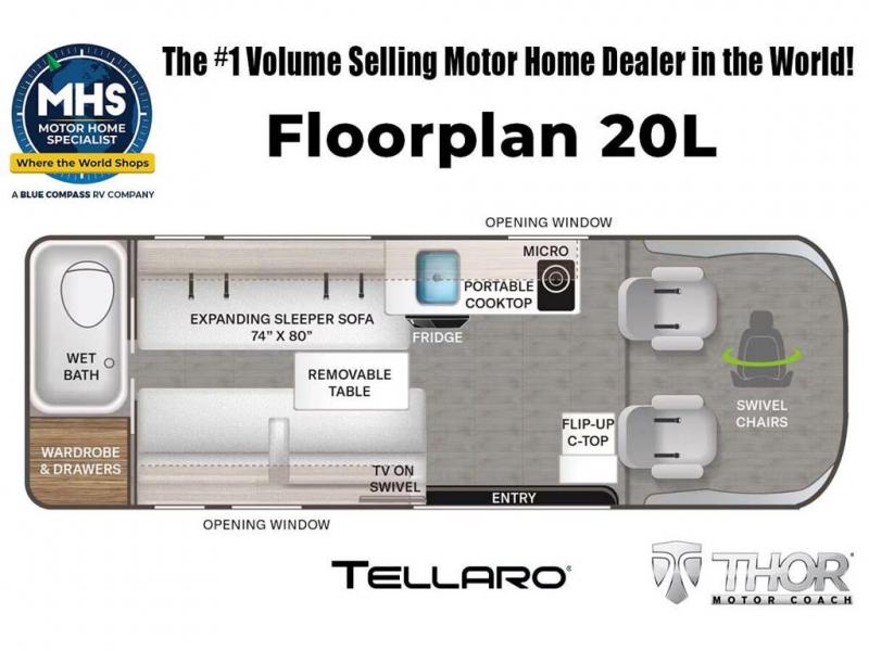 Thor Motor Coach Tellaro Class B gas motorhome 20L highlights: