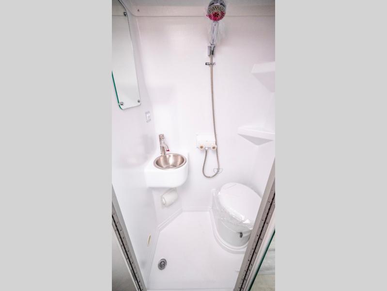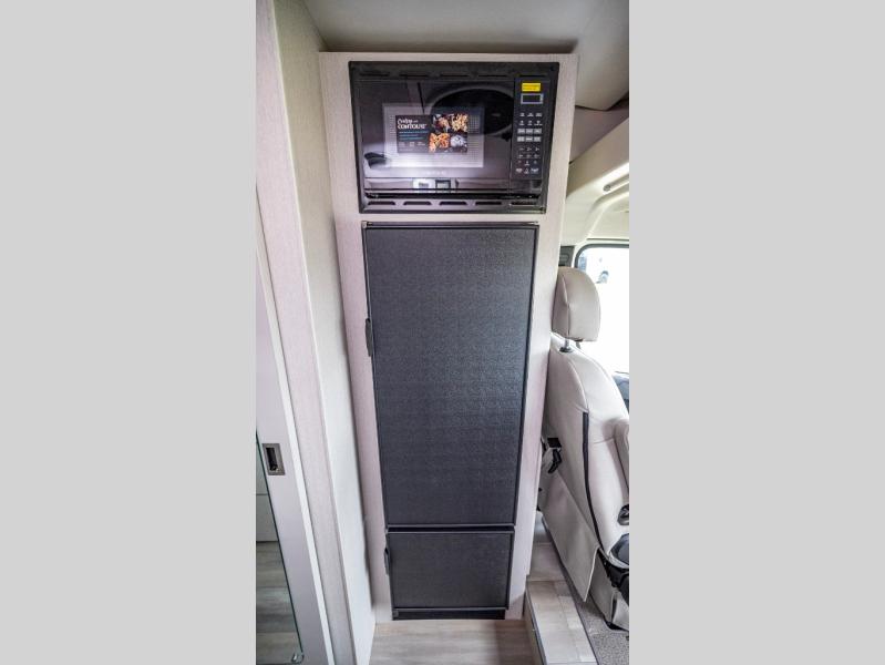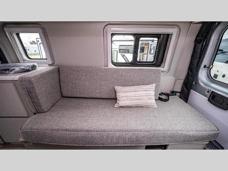 You'll love traveling in this cozy coach for two! The rear sofas convert to a full-width bed when you're ready, and an optional retractable roof rack with Sky Bunk can be added if you're needing additional sleeping space. You can whip up your best breakfast on the single burner induction cooktop or in the microwave oven, and there is a double door refrigerator to keep food fresh. The wet bath includes a cassette toilet, power bath vent with a wall switch and a deluxe shower curtain so you can freshen up each day.