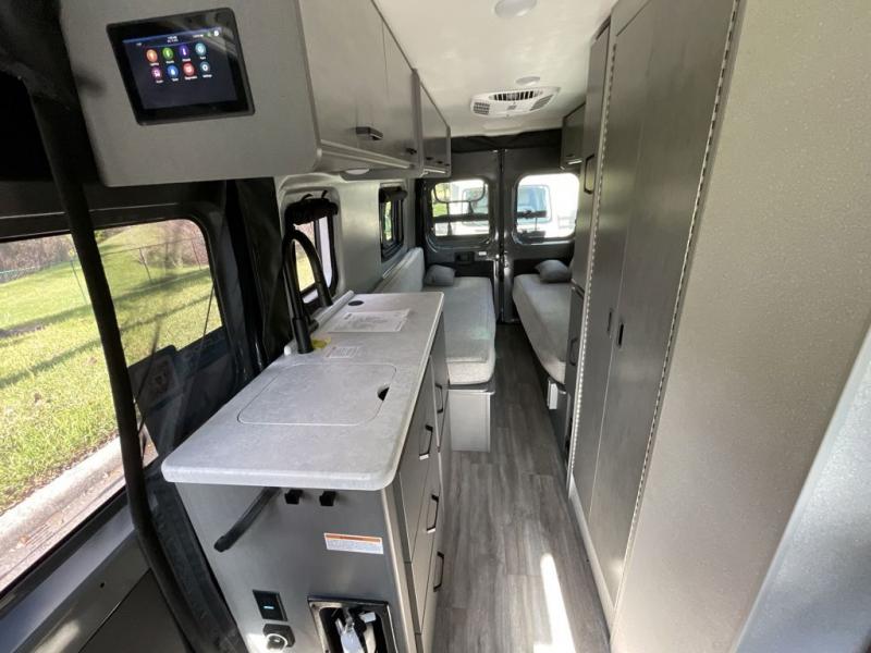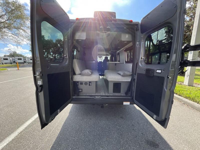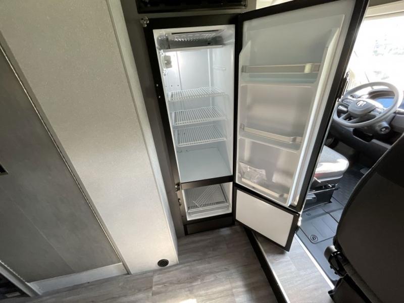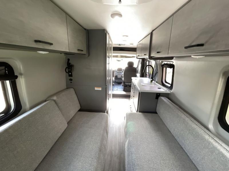 You'll love traveling in this cozy coach for two! The rear sofas convert to a full-width bed when you're ready, and an optional retractable roof rack with Sky Bunk can be added if you're needing additional sleeping space. You can whip up your best breakfast on the single burner induction cooktop or in the microwave oven, and there is a double door refrigerator to keep food fresh. The wet bath includes a cassette toilet, power bath vent with a wall switch and a deluxe shower curtain so you can freshen up each day.