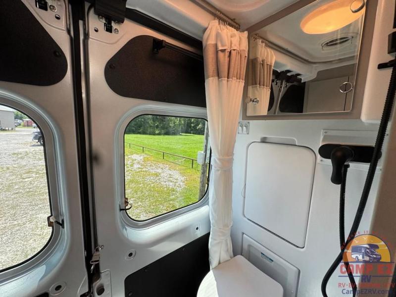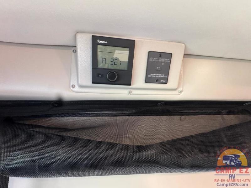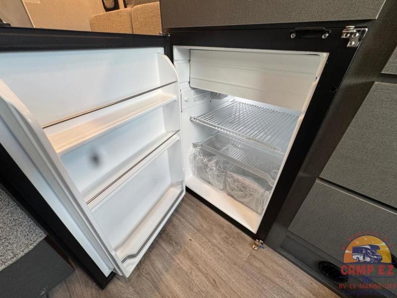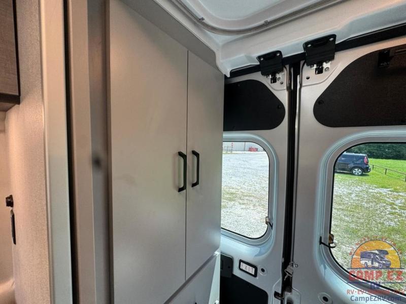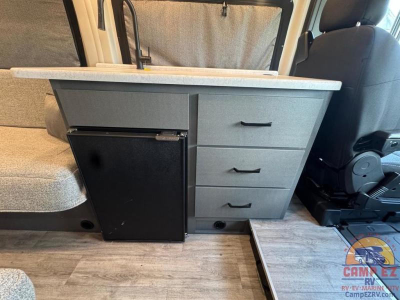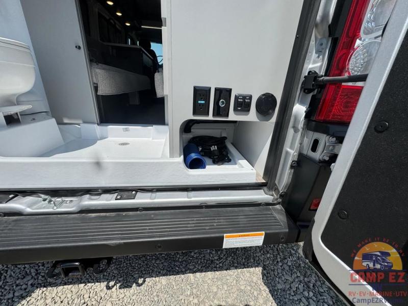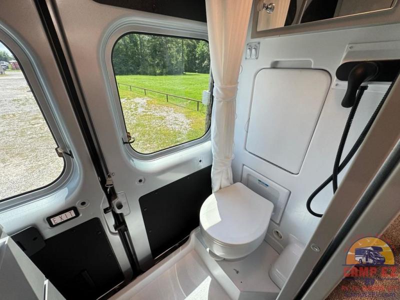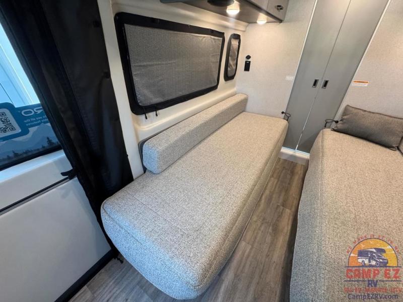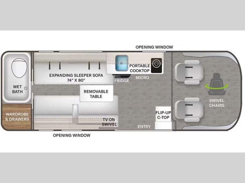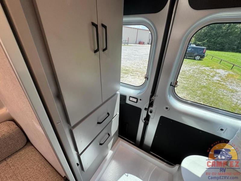 This Tellaro Sport Class B gas motorhome has a very helpful kitchen with a pop-out outlet, a flip-up countertop, and a microwave oven! There is a removable sofa table so that you can combine the two twin-size beds together to create one large 74" x 80" expanding sleeper sofa bed. There are pocket doors at the wet bath's entrance to utilize space well, and inside the bathroom you will find a wardrobe and drawers to keep your linens and toiletries safely tucked away.