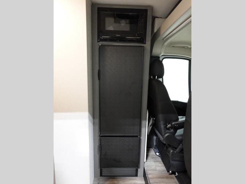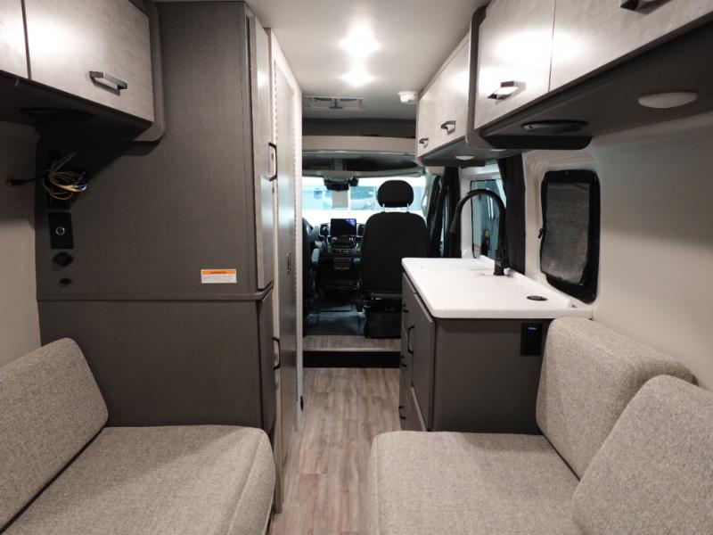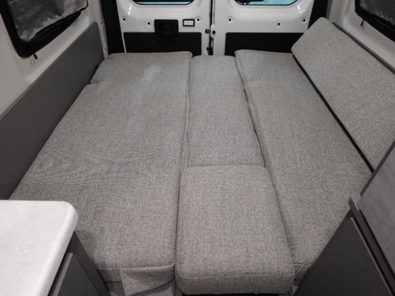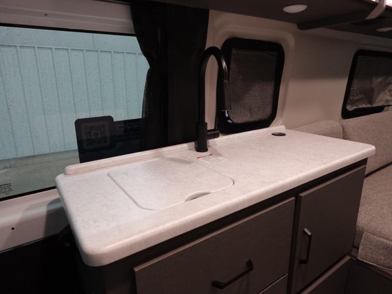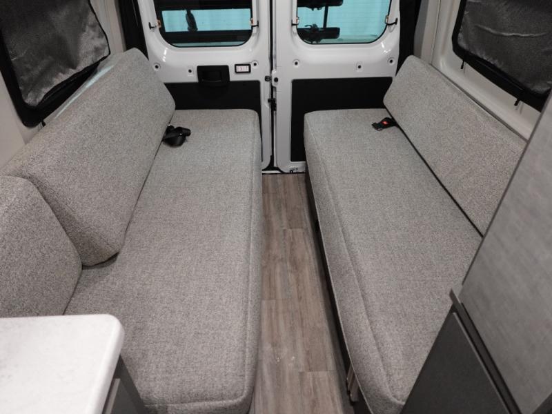 You'll love traveling in this cozy coach for two! The rear sofas convert to a full-width bed when you're ready, and an optional retractable roof rack with Sky Bunk can be added if you're needing additional sleeping space. You can whip up your best breakfast on the single burner induction cooktop or in the microwave oven, and there is a double door refrigerator to keep food fresh. The wet bath includes a cassette toilet, power bath vent with a wall switch and a deluxe shower curtain so you can freshen up each day.