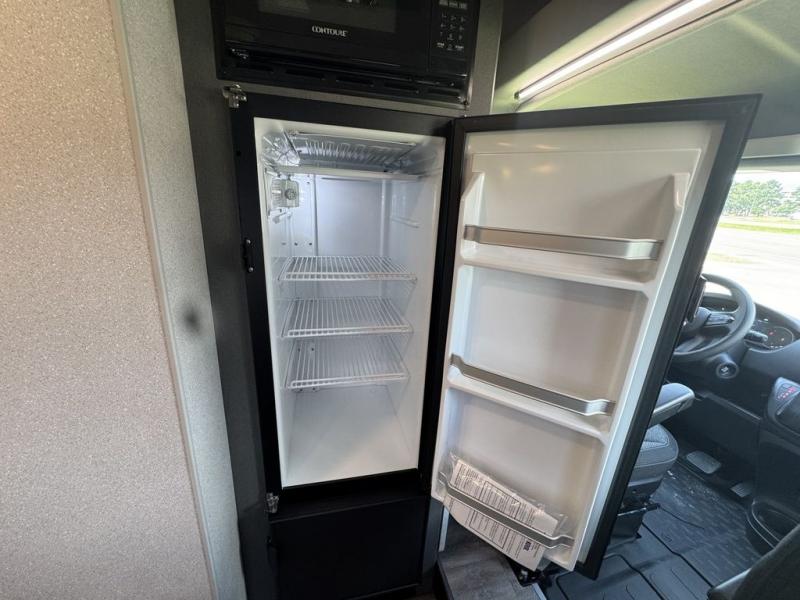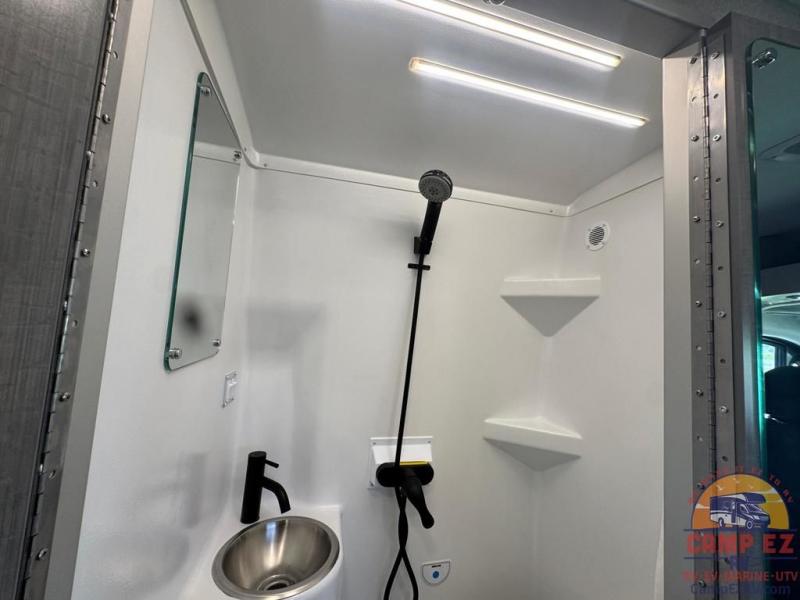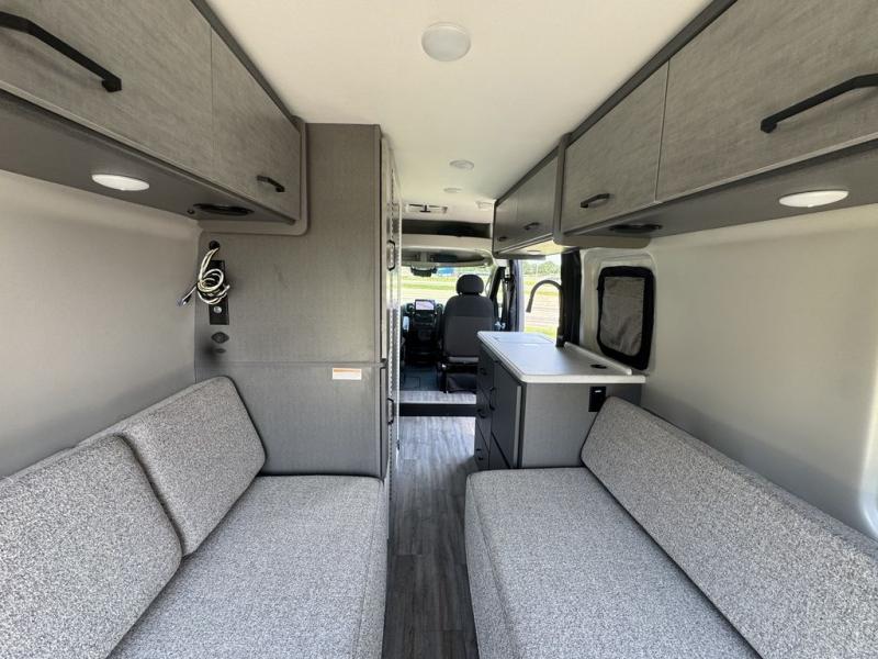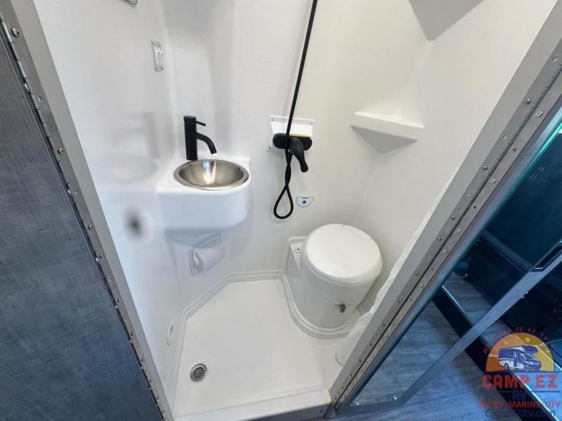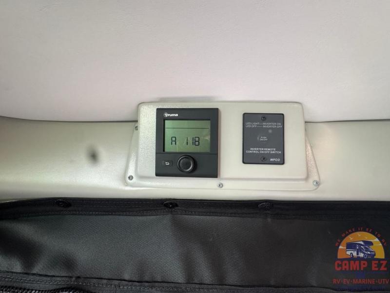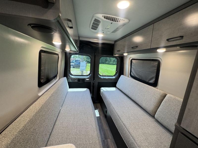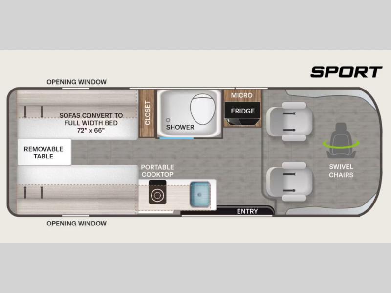 You'll love traveling in this cozy coach for two! The rear sofas convert to a full-width bed when you're ready, and an optional retractable roof rack with Sky Bunk can be added if you're needing additional sleeping space. You can whip up your best breakfast on the single burner induction cooktop or in the microwave oven, and there is a double door refrigerator to keep food fresh. The wet bath includes a cassette toilet, power bath vent with a wall switch and a deluxe shower curtain so you can freshen up each day.