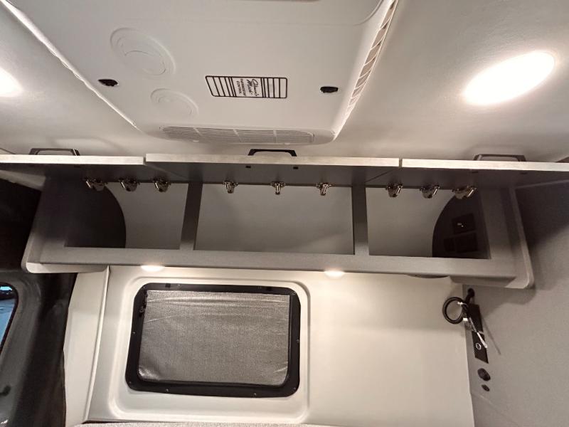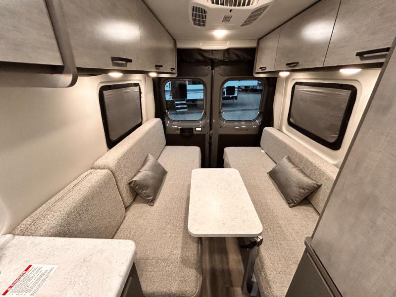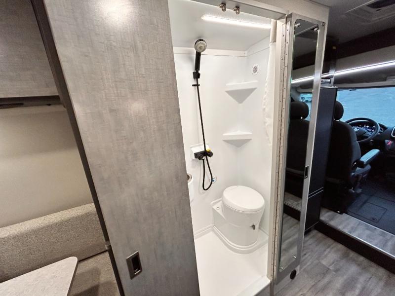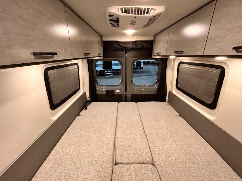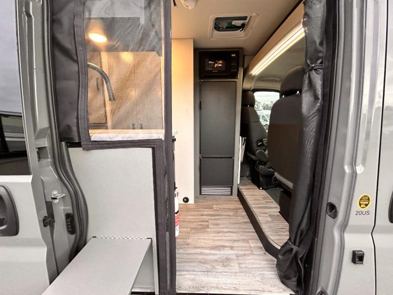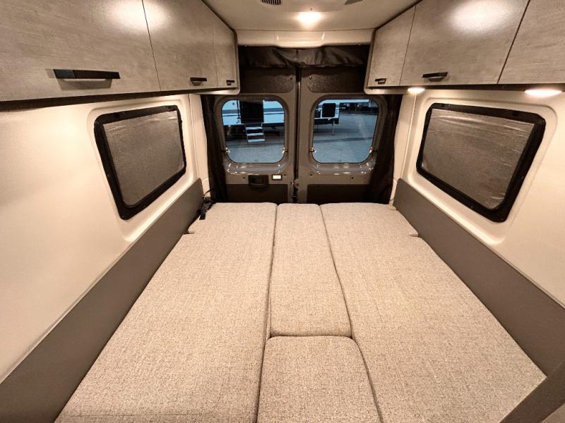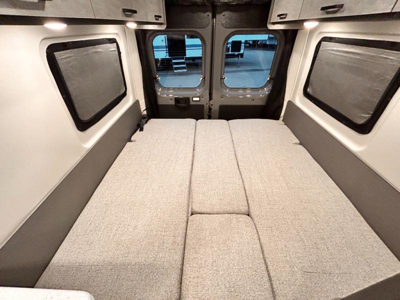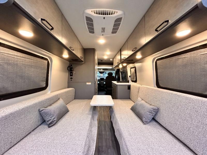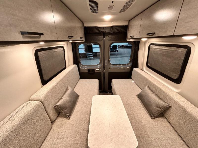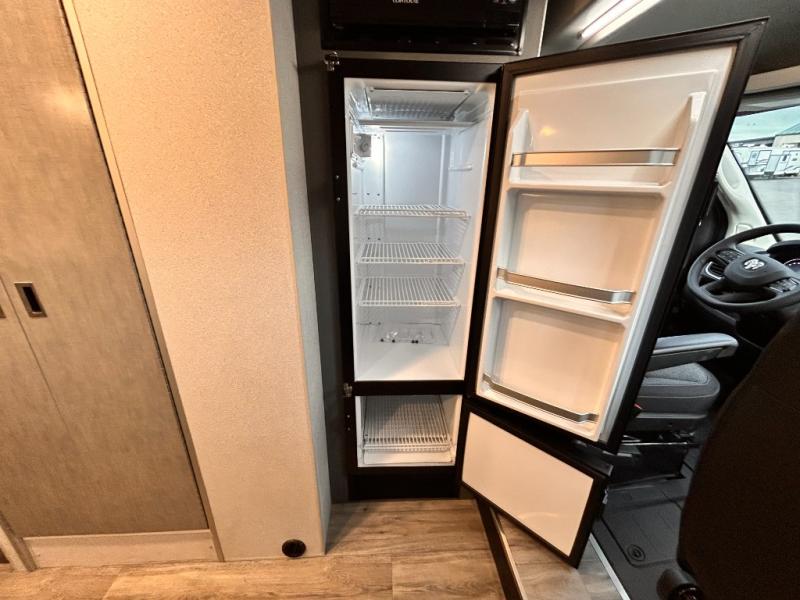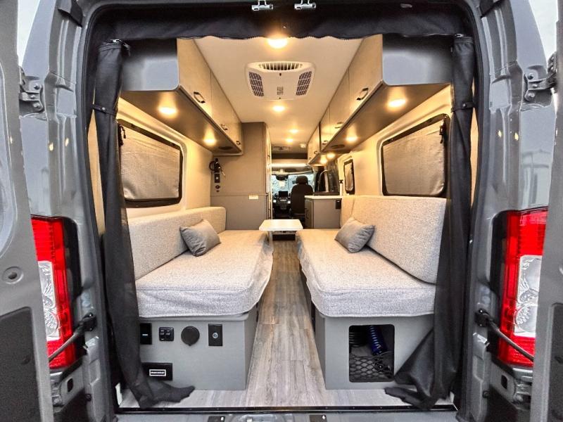 You'll love traveling in this cozy coach for two! The rear sofas convert to a full-width bed when you're ready, and an optional retractable roof rack with Sky Bunk can be added if you're needing additional sleeping space. You can whip up your best breakfast on the single burner induction cooktop or in the microwave oven, and there is a double door refrigerator to keep food fresh. The wet bath includes a cassette toilet, power bath vent with a wall switch and a deluxe shower curtain so you can freshen up each day.