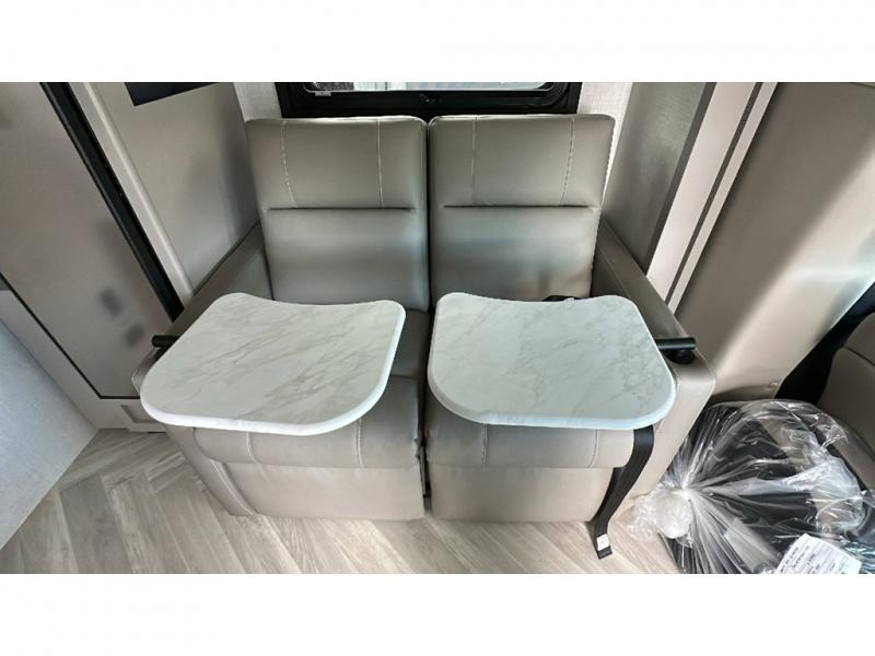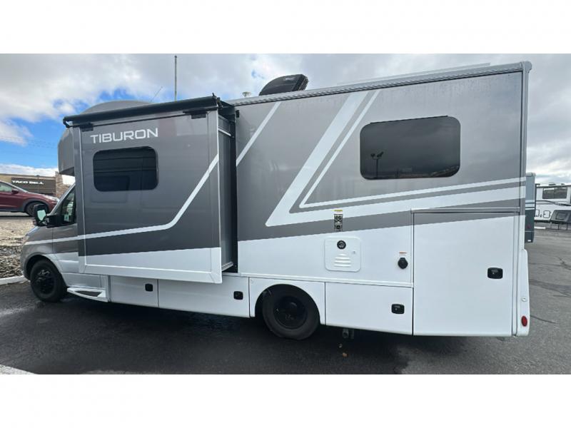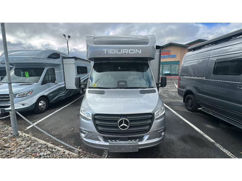 You will be well on your way to unforgettable journeys when you purchase the Thor Motor Coach Tiburon Sprinter Class C diesel motorhome and add it to your line-up! What makes the Tiburon Sprinter so special are the elegant and stunning interiors combined with the eye-catching exterior and powerful Mercedes-Benz Sprinter chassis with a 2.0L l-4 engine and 211HP. You will stay safe as you travel because the Mercedes-Benz safety package includes active braking assist, attention assist, active lane keeping assist, a wet wiper system, and a distance regulator distronic plus. As you tackle each adventure, you'll enjoy the cockpit features that allow you to enjoy traveling, like the Mercedes-Benz multimedia dash radio with Bluetooth®, navigation, and SiriusXM® and the rearview mirror with back-up system. And don't overlook the electrical and plumbing features! You will be impressed by the Winegard® ConnecT™ 2.0 Wi-Fi/4G/TV antenna, tankless water heater, and 200W solar charging system with power controller.
