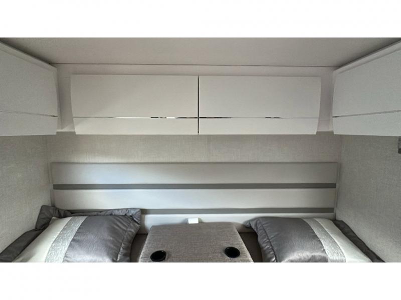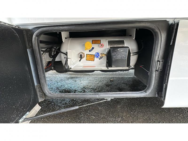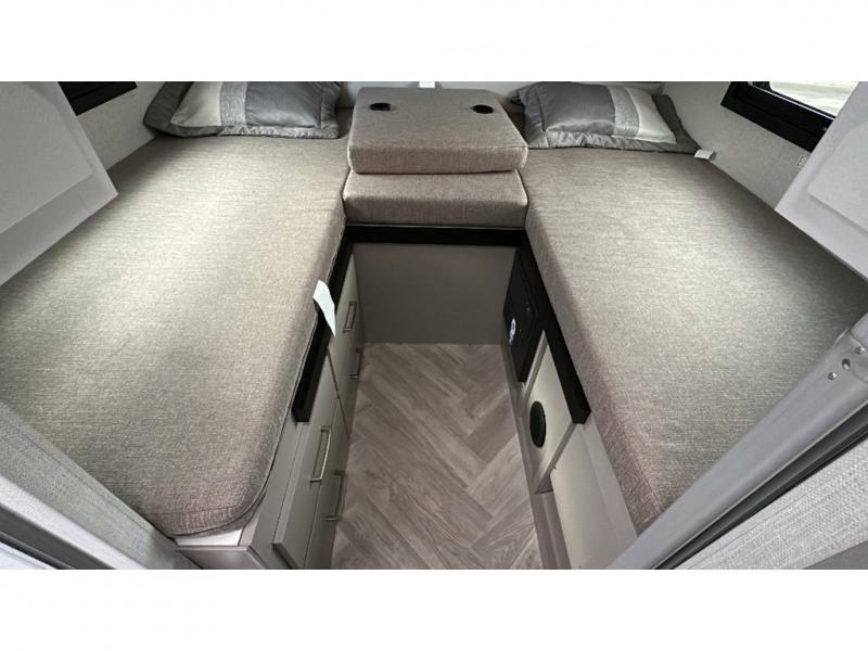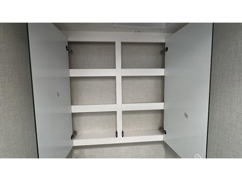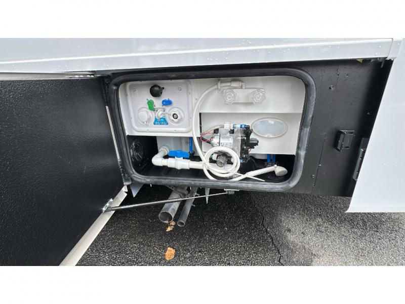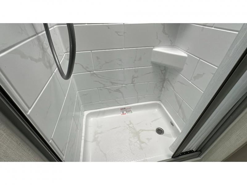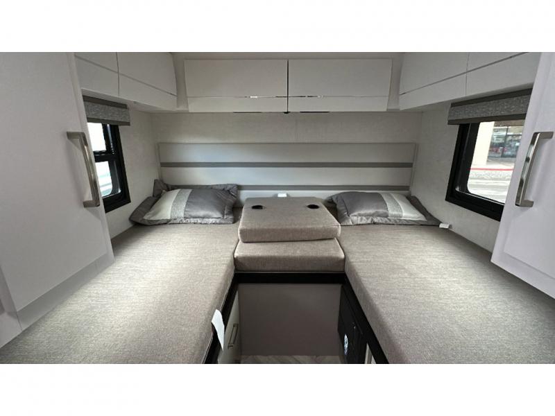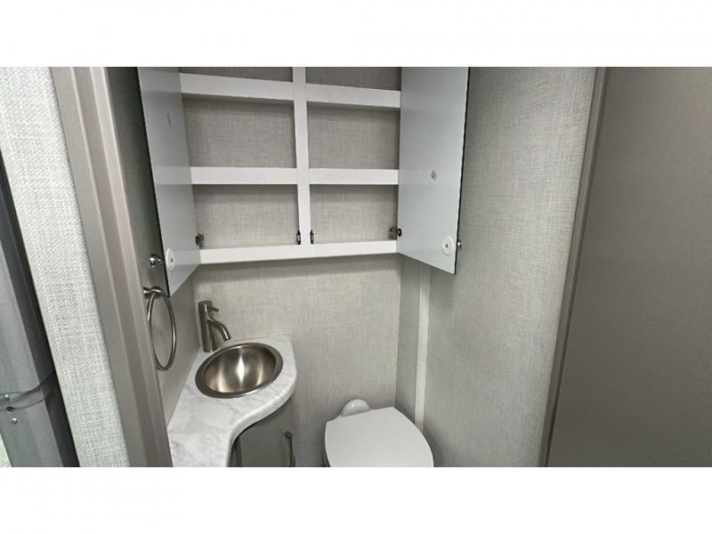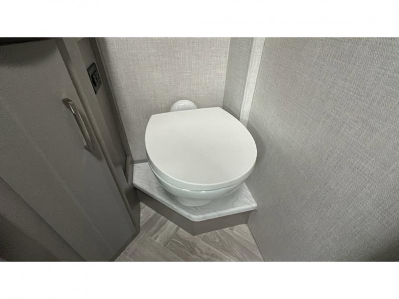 Enjoy a relaxing road trip in this motorhome! There are lots of conveniences in the kitchen. You'll find a 12V refrigerator with auto generator start, pressed laminate countertops with an under-mounted sink that has a sink cover, a two-burner gas cooktop with a glass cover and electric start, a convection microwave with an air fryer, and a large stainless steel single-bowl sink and faucet with pull-down sprayer. The separated bathroom is also accommodating, and it features a skylight above the 24" x 32" shower with curved anti-microbial shower curtain across from a private foot-flush toilet and sink. The rear 31" x 76" twin beds can convert into a king bed with closets at the foot of the beds and a privacy curtain to draw for a comfortable night's rest!