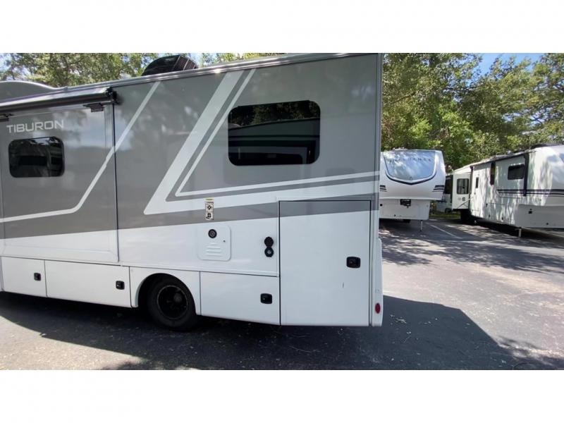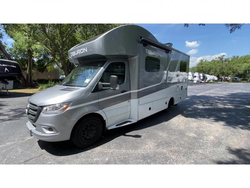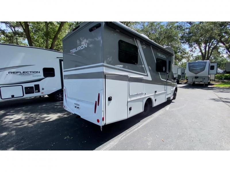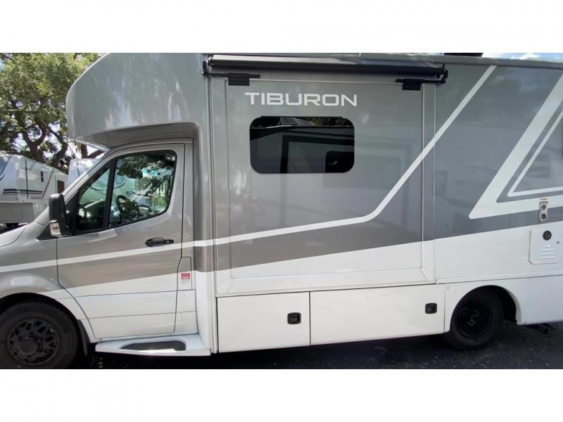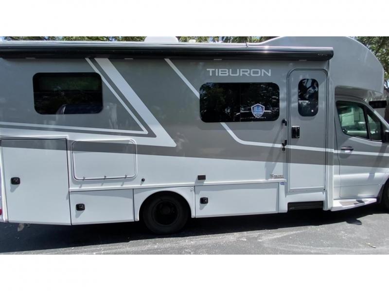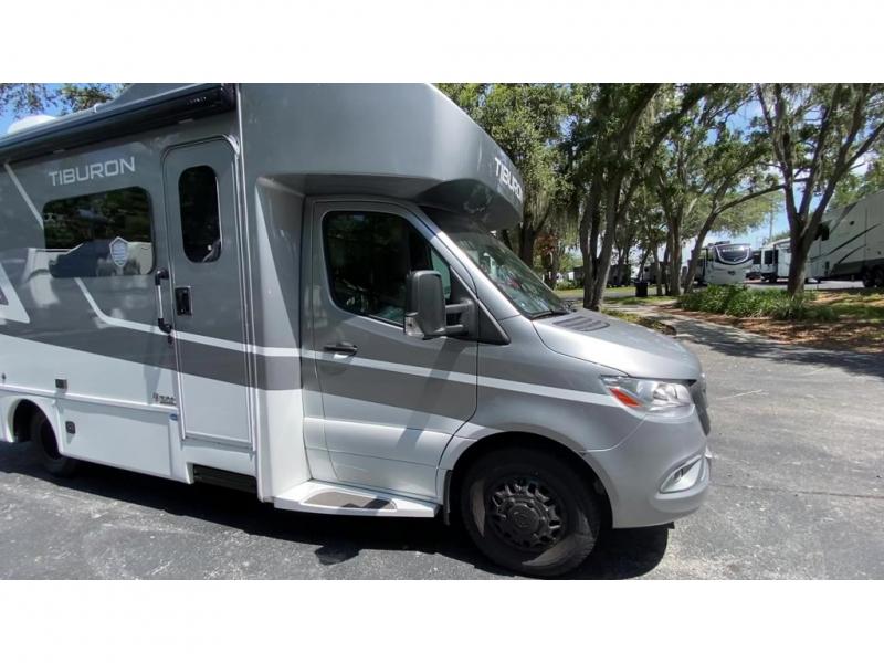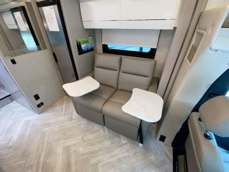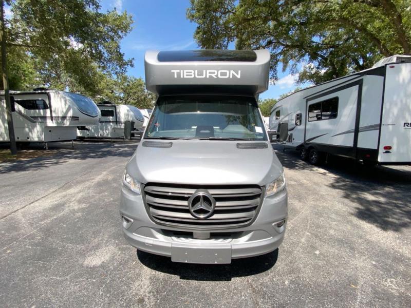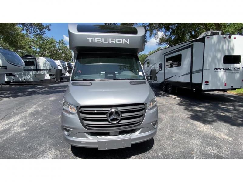 You will be well on your way to unforgettable journeys when you purchase the Thor Motor Coach Tiburon Sprinter Class C diesel motorhome and add it to your line-up! What makes the Tiburon Sprinter so special are the elegant and stunning interiors combined with the eye-catching exterior and powerful Mercedes-Benz Sprinter chassis with a 2.0L l-4 engine and 211HP. You will stay safe as you travel because the Mercedes-Benz safety package includes active braking assist, attention assist, active lane keeping assist, a wet wiper system, and a distance regulator distronic plus. As you tackle each adventure, you'll enjoy the cockpit features that allow you to enjoy traveling, like the Mercedes-Benz multimedia dash radio with Bluetooth®, navigation, and SiriusXM® and the rearview mirror with back-up system. And don't overlook the electrical and plumbing features! You will be impressed by the Winegard® ConnecT™ 2.0 Wi-Fi/4G/TV antenna, tankless water heater, and 200W solar charging system with power controller.