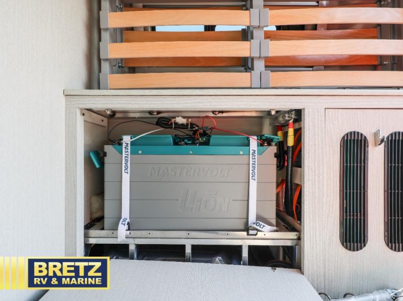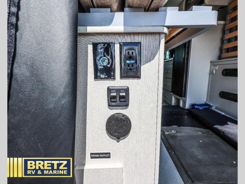 You're going to love every minute in this coach that can sleep two people each night. The fold up rear bed will provide more space during the day, and the wet bath will let you clean up before heading off to explore. After you've worked up an appetite, you can prepare lunch on the single burner induction cooktop or use the microwave oven. There is also a fold out exterior table and a 10' 8" awning if you'd like to take your plate outdoors. There are dual lap belts in the dinette plus a removeable table if you want to stretch your legs out. And you'll never go bored with a 24" Smart TV onboard for movies!