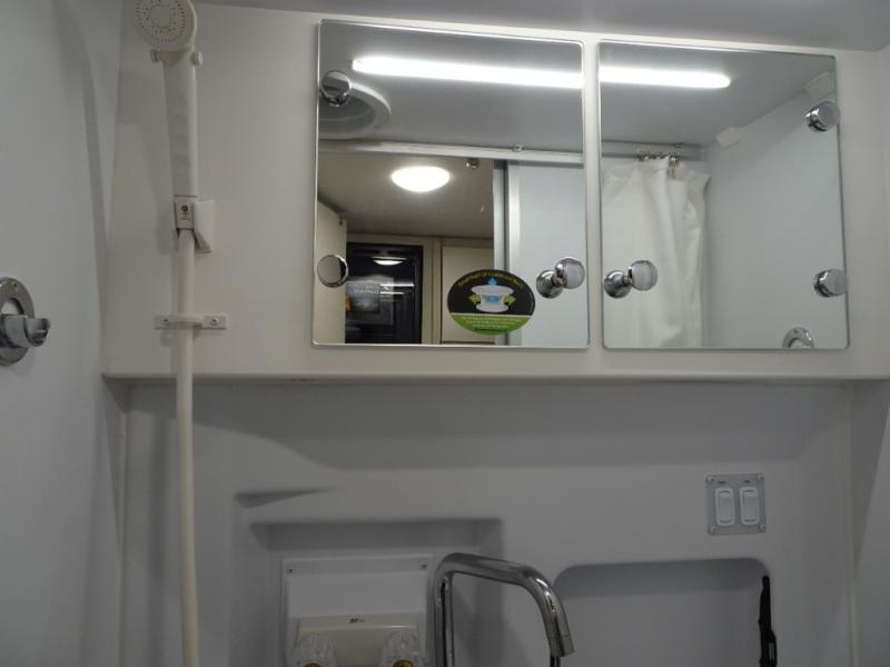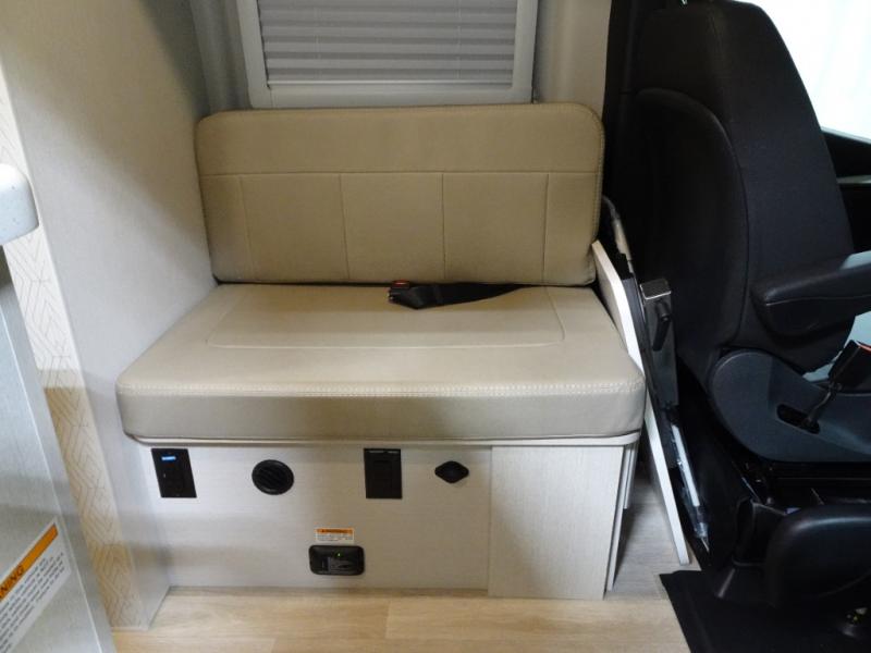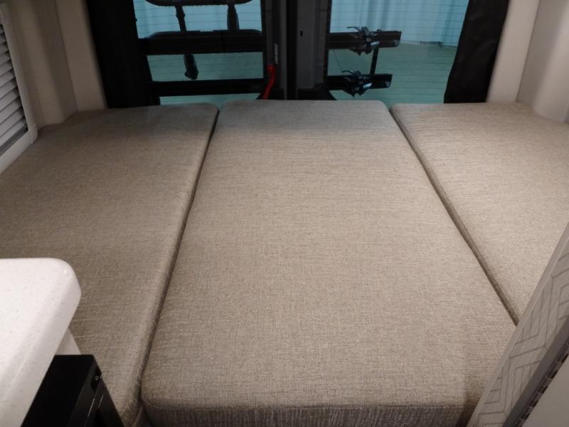 You're going to love every minute in this coach that can sleep two people each night. The fold up rear bed will provide more space during the day, and the wet bath will let you clean up before heading off to explore. After you've worked up an appetite, you can prepare lunch on the single burner induction cooktop or use the microwave oven. There is also a fold out exterior table and a 10' 8" awning if you'd like to take your plate outdoors. There are dual lap belts in the dinette plus a removeable table if you want to stretch your legs out. And you'll never go bored with a 24" Smart TV onboard for movies!