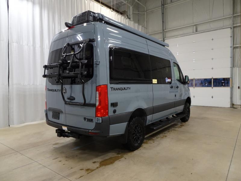 The most relaxing vacation you'll ever have is in the Thor Motor Coach Tranquility Class B diesel motorhome! These vans have a 2.0L 4-cyclinder engine to power your adventures and a 5,000 lb. trailer hitch for towing purposes. There is also a Mercedes-Benz Sprinter with a 2500 or 3500 AWD chassis depending on the model you choose. You'll be able to stay connected whenever you want with the Winegard® ConnecT 2.0 4G/Wi-Fi/digital TV antenna, and you can also use the electronics station with HDMI cable and USB charging ports to keep your devices powered. Some of the interior comforts include a solid surface countertop in the kitchen, cassette shades, and Euro-style cabinet doors. Getting off grid is easier than ever with the solar charge control with a 200W solar panel because it allows you to dry camp, and you can plan to stay off grid even longer with the Re(Li)able power pack electrical system that comes with a 460Ah lithium battery, a 3,000W pure sine inverter, and a 250 amp alternator.