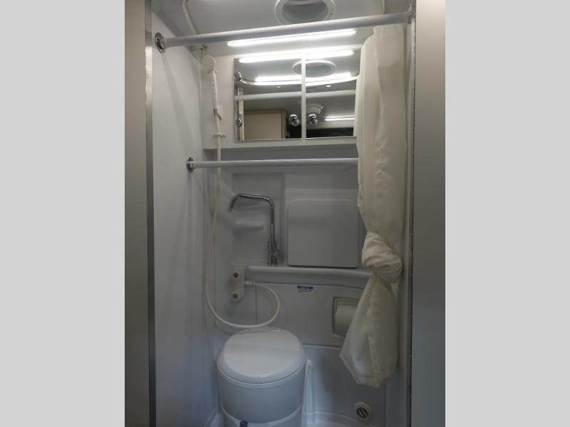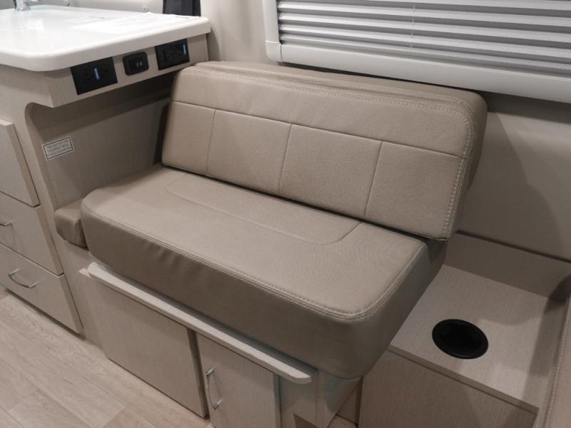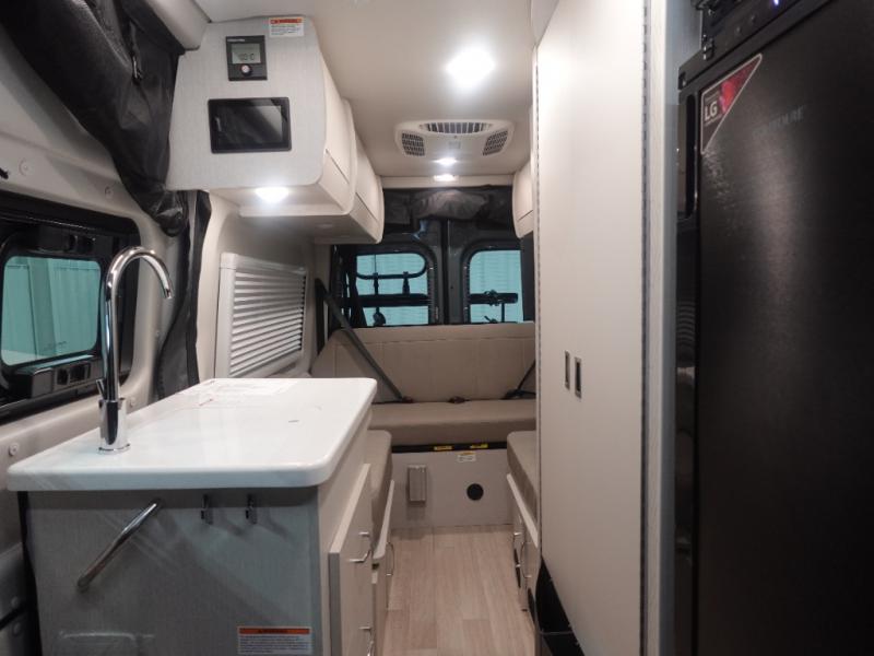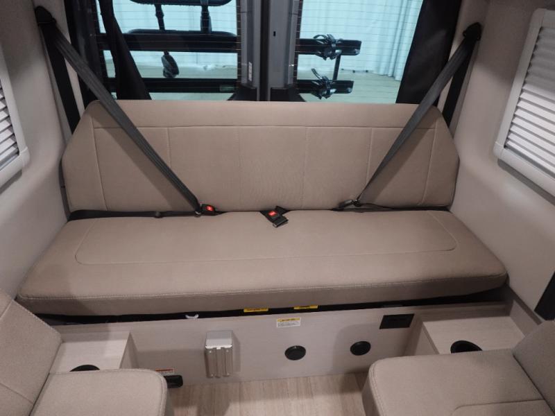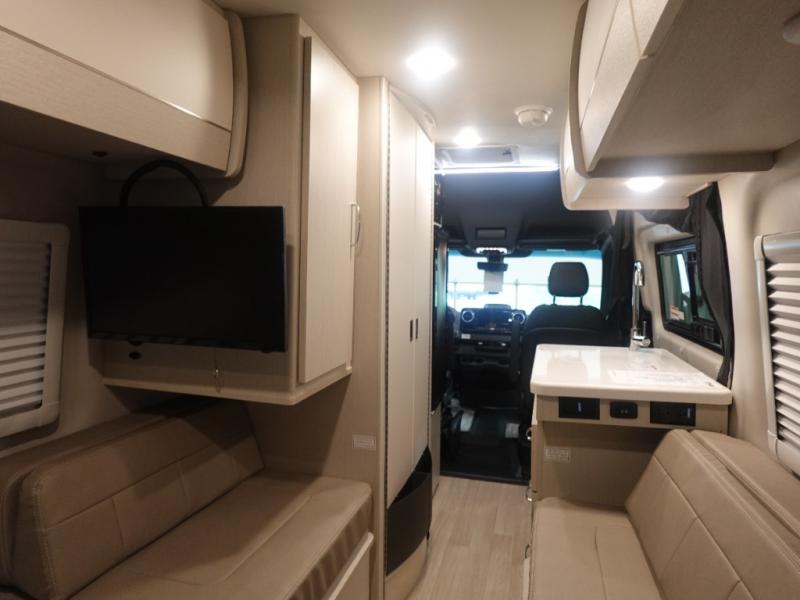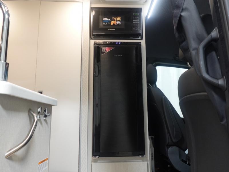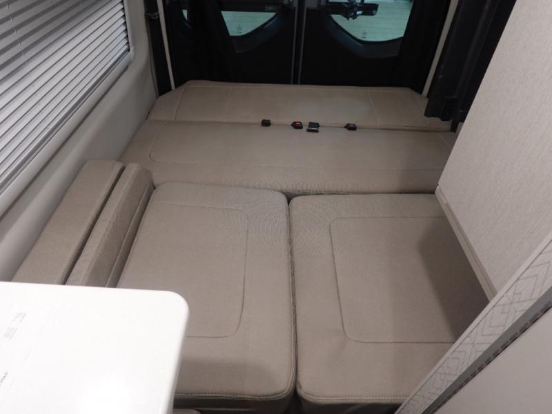 Nothing is more tranquil than this Tranquility Class B diesel motorhome! Enjoy the freedom to create delicious meals while on the road with the single burner induction cooktop and a microwave oven, and keep your leftovers and favorite foods chilled in the single-door 12V electric refrigerator. There is an electric fold-out sleeping area with a removable table, plus a 24" Smart TV to keep you entertained. This model also includes a wet bath with a cassette toilet, a power bath vent, plus a shower with a deluxe curtain.