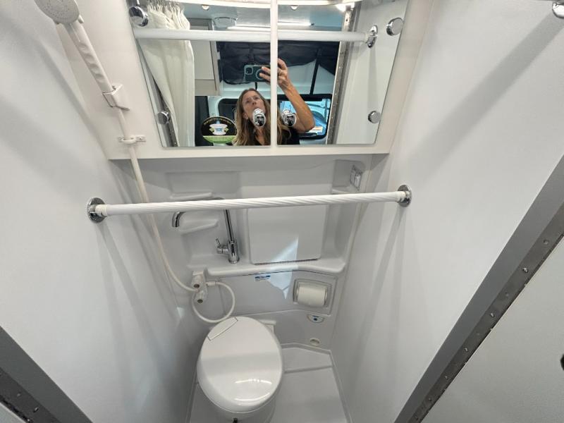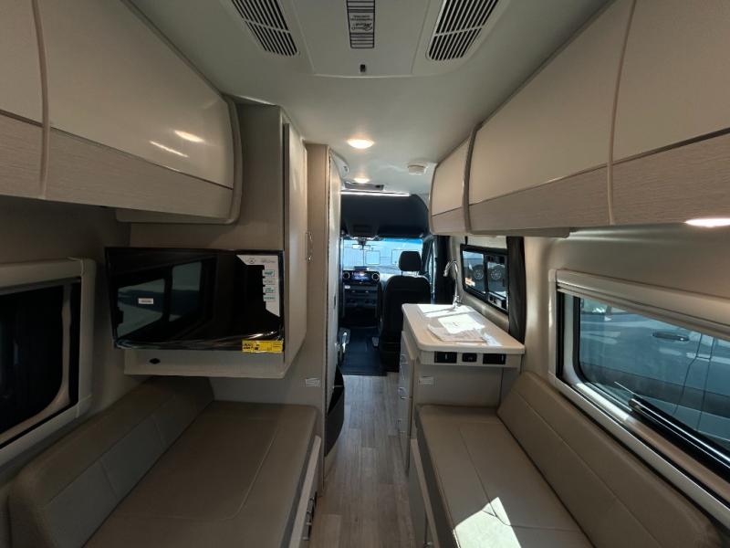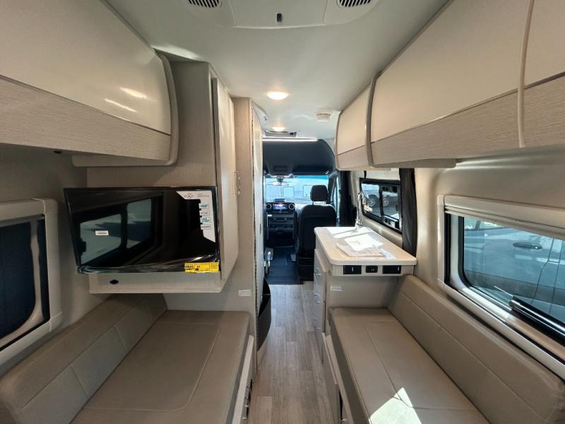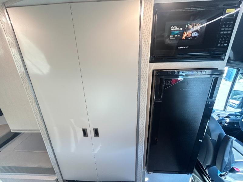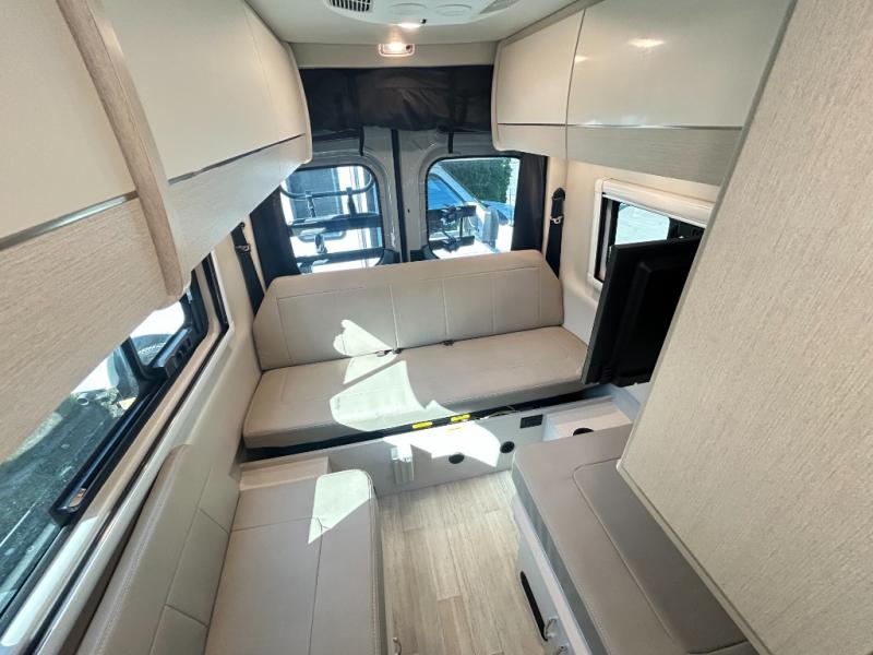 Nothing is more tranquil than this Tranquility Class B diesel motorhome! Enjoy the freedom to create delicious meals while on the road with the single burner induction cooktop and a microwave oven, and keep your leftovers and favorite foods chilled in the single-door 12V electric refrigerator. There is an electric fold-out sleeping area with a removable table, plus a 24" Smart TV to keep you entertained. This model also includes a wet bath with a cassette toilet, a power bath vent, plus a shower with a deluxe curtain.