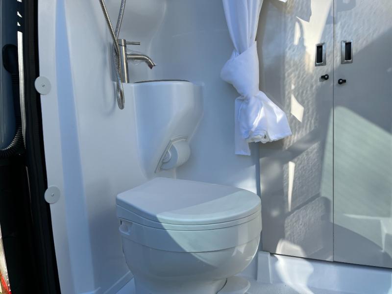 The wet bath includes a shower and toilet, offering the convenience of a full bathroom while traveling. This feature allows you to enjoy greater independence while exploring destinations that may not have nearby facilities.