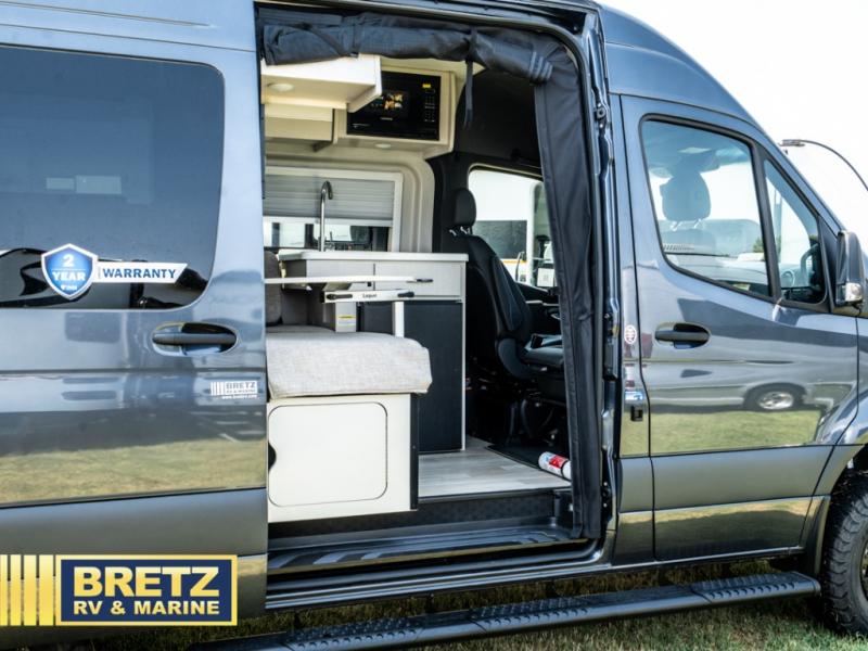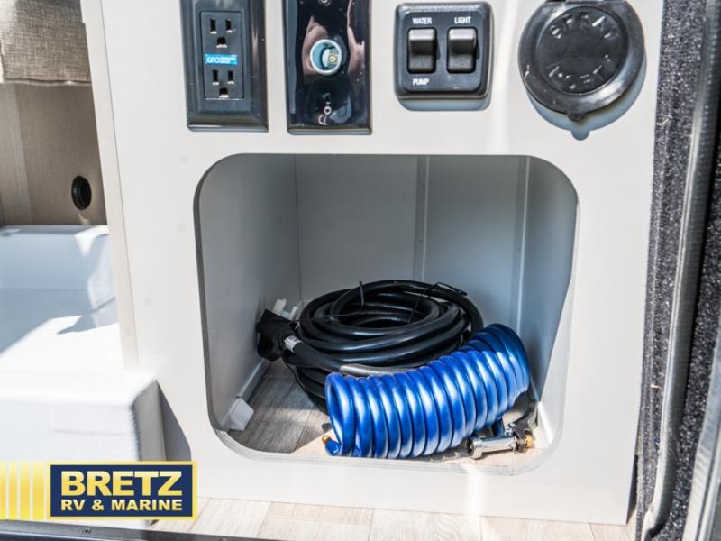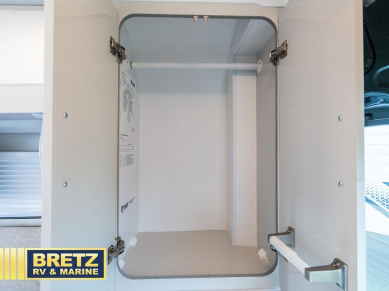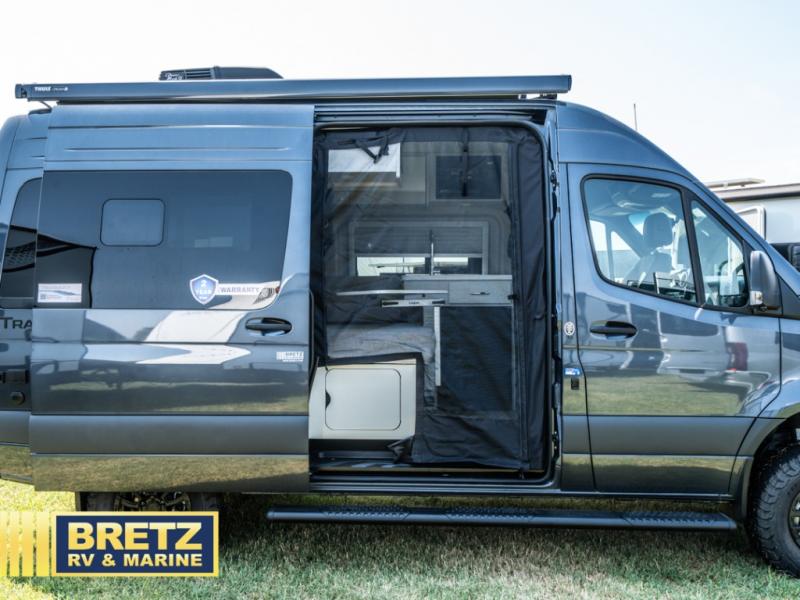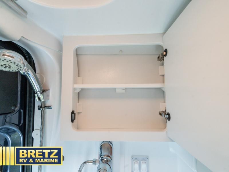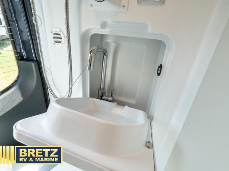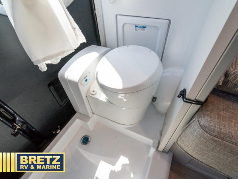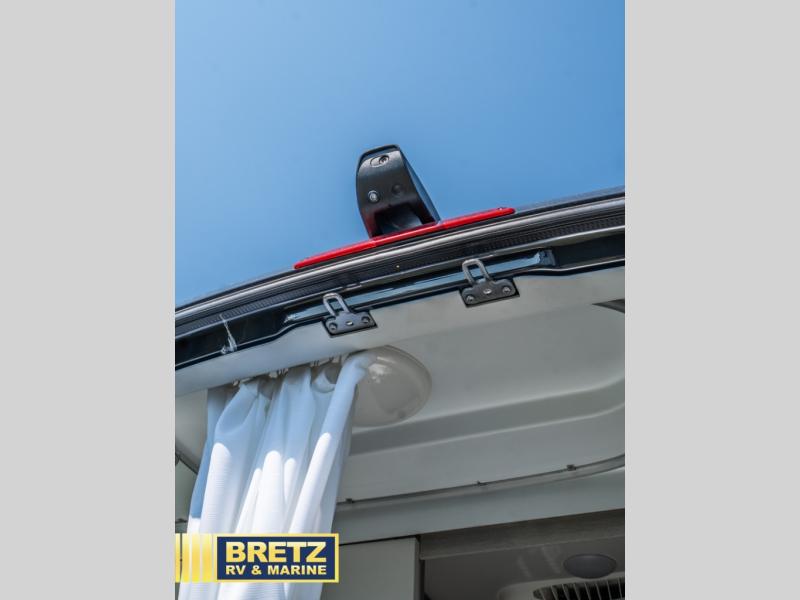 You'll be ready for a weekend getaway or a longer trip in this Tranquility Transit! This model offers a rear sleeping area with side flairs and a 51" x 74" bed. The kitchen has a two burner gas cooktop, microwave oven, and single door 12V electric refrigerator. You will also appreciate the sink with cover and single handle faucet. Enjoy meals at the dinette which includes two lap belts for passenger use and a removable table. Or you can head outside to eat at the fold-out exterior table. The Thule power patio awning has integrated LED lighting so you can enjoy shelter from the sun or an evening outdoors.