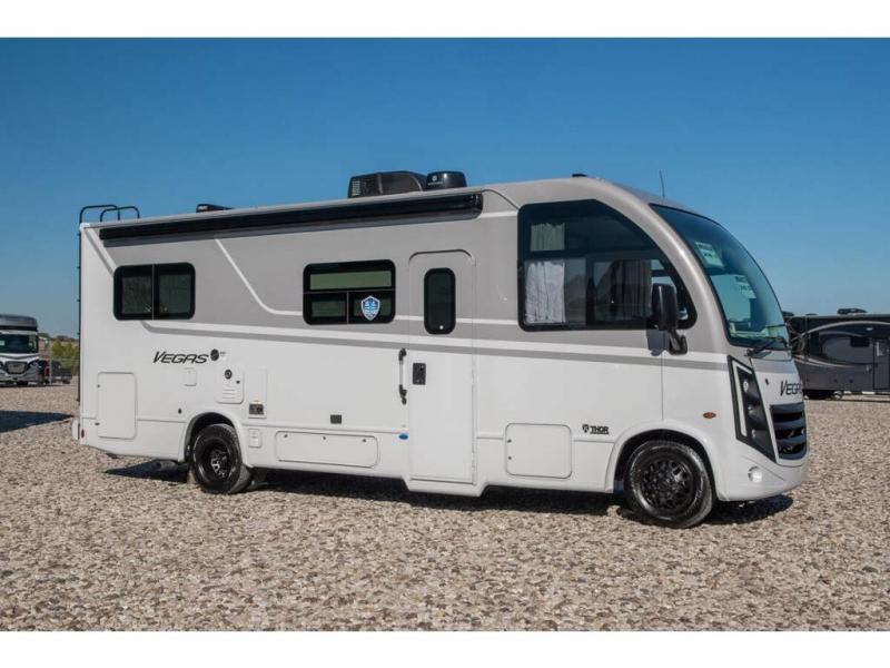 MSRP $183,766. New 2026 Thor Motor Coach Vegas RV Model 24.1. This RV measures approximately 25 feet 8 inches in length and features a Ford E-Series chassis with a 7.3L V-8 engine, a six speed automatic transmission, a drop-down overhead loft, slide-out and a bedroom TV. This beautiful RV features the optional electric stabilizing system, power drop down bunk, upgraded paint and a power driver seat. The Vegas also boasts an impressive list of standard features including the Winegard Connect 2.0 WiFi, rotary battery disconnect switch, adjustable shelving bracketry, BM Pro Multiplex system, power privacy shade on windshield, touchscreen radio that features navigation and back-up monitor, frameless windows, heated remote exterior mirrors with integrated sideview cameras, lateral power patio awning with integrated LED lighting and much more. Shop hundreds of class A motorhomes all at 1 location! Choose from Thor A.C.E. – Resonate – Hurricane – Windsport – Luminate – Indigo – Vegas – Axis – Challenger – Miramar Fleetwood Flair – Fortis – Flex – Bounder - Forest River Georgetown - FR3 – Entegra Coach Vision – Vision XL – Emblem – Holiday Rambler Admiral – Eclipse – Invicta – Vacationer - and much more. We also sell quality pre-owned models such as Jayco Alante SE – Alante – Precept – Precept Prestige – Tiffin Allegro Open Road – Newmar Canyon Star – Bay Star – Winnebago Vista – Sunstar – Adventurer – Coachmen Mirada – Pursuit - Encore and much more. Visit MHSRV.com for our complete line-up and the sale prices that have made us the #1 volume selling motor home dealership in the world 12 years in a row! For additional details on this unit and our entire inventory including brochures, window sticker, videos, photos, reviews & testimonials as well as additional information about Motor Home Specialist and our manufacturers please visit us at MHSRV.com or call 800-335-6054. At Motor Home Specialist, we DO NOT charge any prep or orientation fees like you will find at other dealerships. All sale prices include a 200-point inspection, interior & exterior wash, detail service and a fully automated high-pressure rain booth test and coach wash that is a standout service unlike that of any other in the industry. You will also receive a thorough coach orientation with an MHSRV technician, a night stay in our delivery park featuring landscaped and covered pads with full hook-ups and much more! Read Thousands upon Thousands of 5-Star Reviews at MHSRV.com and See What They Had to Say About Their Experience at Motor Home Specialist. WHY PAY MORE? WHY SETTLE FOR LESS?
