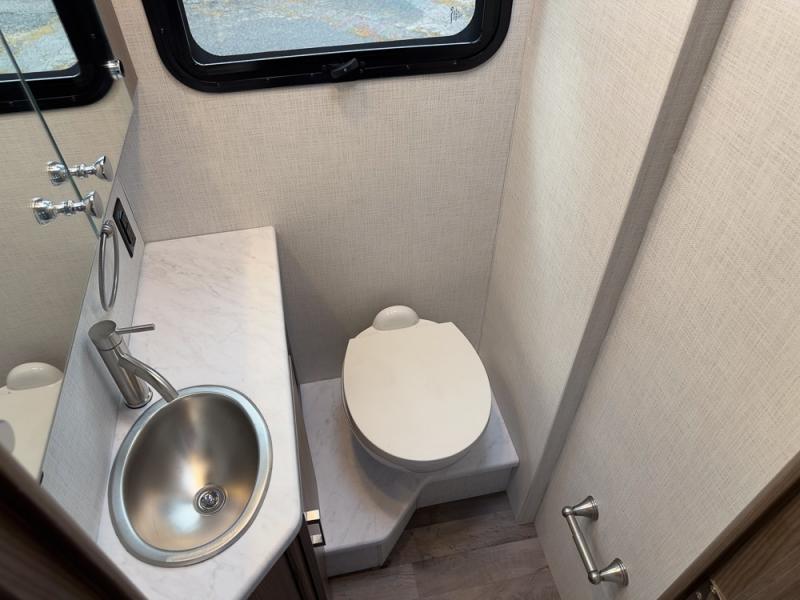 You're going to love the interior and exterior amenities found with this coach! The 73.7 cu. ft. of exterior storage will allow you to bring along hiking and fishing gear, and you can add an optional slide out griddle if you enjoy cooking outdoors. Once you unpack and head inside, you can relax on the theater seating. And a 32" Smart TV is across from the sofa for easy viewing! It will be so easy to prepare meals each day in the kitchen with its two burner gas cooktop and convection microwave with an air fryer, and the 12V double door refrigerator can keep food fresh. You'll appreciate the rear bedroom with a privacy curtain, an RV queen bed, plus dual closets to keep your clothes wrinkle free. This model also includes an independent shower across from the private toilet and sink, allowing two people to freshen up at once!
