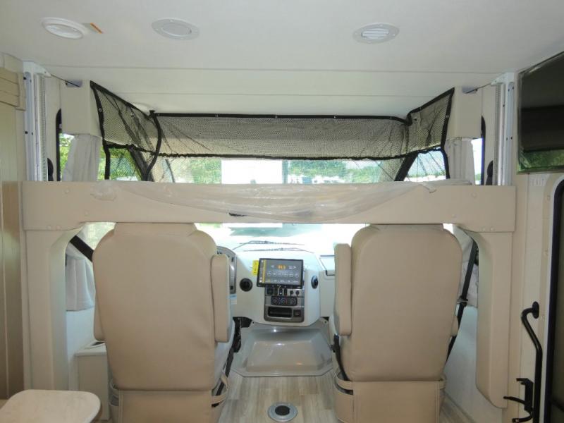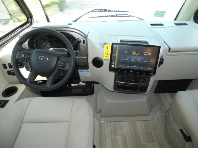 You'll find excellent drivability with the Thor Motor Coach Vegas Class A gas motorhome thanks to the Ford E-Series chassis and 7.3L V8 engine! They allow you to set up camp with ease thanks to the Rapid Camp+ multiplex system which is your all-in-one control center. You won't even have to get up while you're outside relaxing when you want the power patio awning to extend because you can open it with the click of a button on your phone. If you hook up a grill to the exterior LP connection, you'll also have a place to cook while you're outdoors, and the 100W solar panel with a controller helps you get away from the crowds. The HD-MAX exterior with graphics package will catch everyone's eye at the campground, and the premium one-piece domed roof will last through years of use.