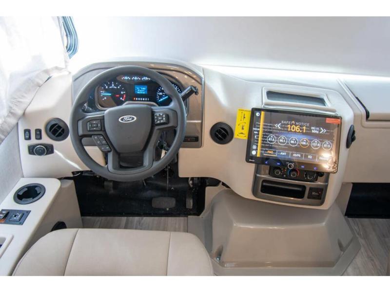 You'll find excellent drivability with the Thor Motor Coach Vegas Class A gas motorhome thanks to the Ford E-Series chassis and 7.3L V8 engine! They allow you to set up camp with ease thanks to the Rapid Camp+ multiplex system which is your all-in-one control center. You won't even have to get up while you're outside relaxing when you want the power patio awning to extend because you can open it with the click of a button on your phone. If you hook up a grill to the exterior LP connection, you'll also have a place to cook while you're outdoors, and the 100W solar panel with a controller helps you get away from the crowds. The HD-MAX exterior with graphics package will catch everyone's eye at the campground, and the premium one-piece domed roof will last through years of use.
