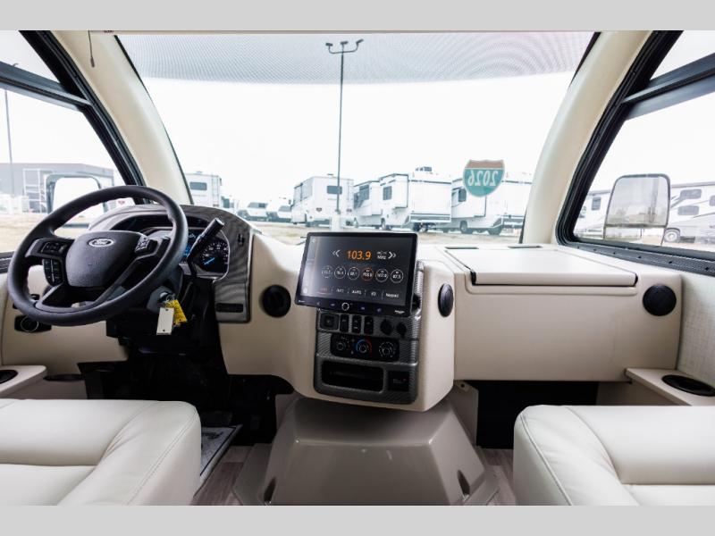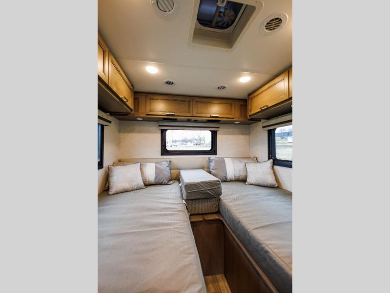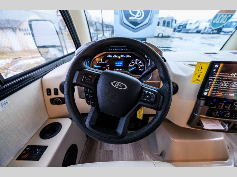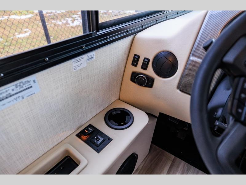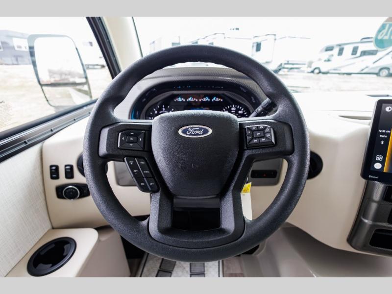 You'll find excellent drivability with the Thor Motor Coach Vegas Class A gas motorhome thanks to the Ford E-Series chassis and 7.3L V8 engine! They allow you to set up camp with ease thanks to the Rapid Camp+ multiplex system which is your all-in-one control center. You won't even have to get up while you're outside relaxing when you want the power patio awning to extend because you can open it with the click of a button on your phone. If you hook up a grill to the exterior LP connection, you'll also have a place to cook while you're outdoors, and the 100W solar panel with a controller helps you get away from the crowds. The HD-MAX exterior with graphics package will catch everyone's eye at the campground, and the premium one-piece domed roof will last through years of use.