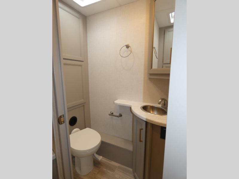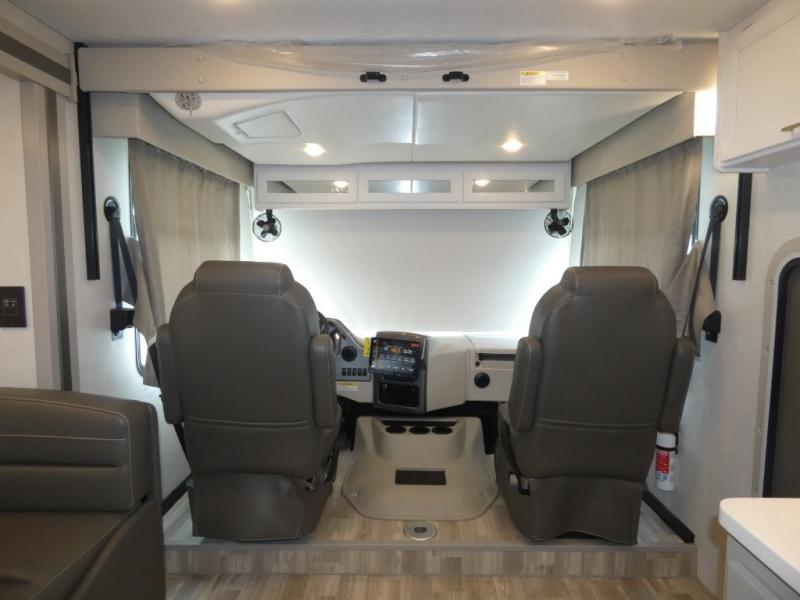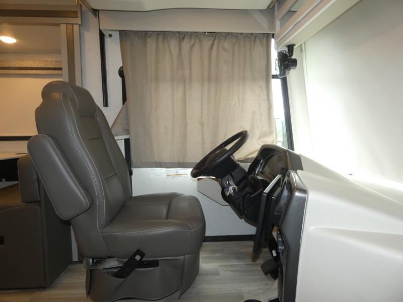 There are all sorts of adventures to be had with the Thor Motor Coach Windsport Class A gas motorhome! Built on a Ford F-53 chassis, the Windsport will gather lots of attention with its HD-MAX® exterior with graphics package. It also offers you a basement pass-through storage and a Pet-Link™ multi-purpose tie-down. There are also reclining/swivel leatherette captain's chairs to relax in while you travel. The Winegard® ConnecT™ Wi-Fi extender +4G will allow you to post on your social media or send an email from the cockpit's dash work station, and the Rapid Camp+® multiplex wiring control system with Bluetooth and 7" touchscreen will allow you to control and monitor the various electrical systems on your coach. This coach will also make you feel right at home with residential vinyl flooring, decorative glass and tile backsplash, a designer headboard, bedspread, and pillow shams, and many more comforts!