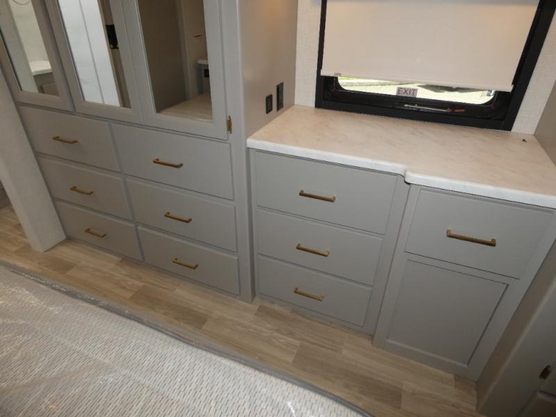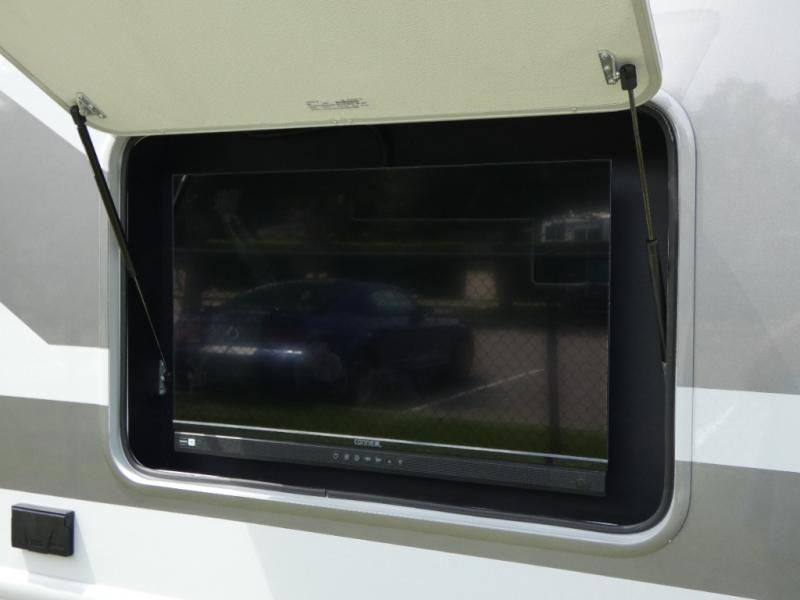 Get ready to take your travels to new heights with our incredible Class A motorhome! The full rear bathroom is spacious and convenient, complete with a generous 30” x 36” shower. The private bedroom is a haven of relaxation, featuring a king bed, closet, dresser, and 32” LED smart TV for relaxing. The living room/kitchen area is the center of the home, equipped with a closet, stackable washer, and dryer prep, half bathroom, linen closet, pantry, 68” sofa bed, dream dinette to share a meal with family, 40” LED smart TV to have an entertaining time with your family and friends, plus a fridge, microwave, and 3-burner cooktop, that will make your cooking experience enjoyable. But that's not all - this motorhome also features a drop-down overhead bunk sleeping area, perfect for kids or guests. This unit is also the best choice if you are seeking comfort time outside thanks to its massive 18’ awning ideal for enjoying the fresh air and a 32” TV for outdoor entertainment.