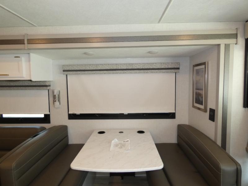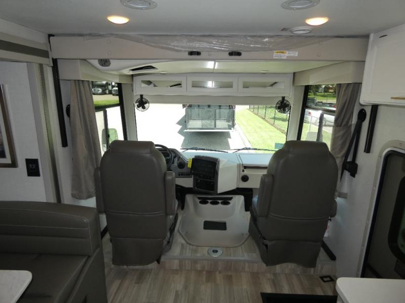 There are all sorts of adventures to be had with the Thor Motor Coach Windsport Class A gas motorhome! Built on a Ford F-53 chassis, the Windsport will gather lots of attention with its HD-MAX® exterior with graphics package. It also offers you a basement pass-through storage and a Pet-Link™ multi-purpose tie-down. There are also reclining/swivel leatherette captain's chairs to relax in while you travel. The Winegard® ConnecT™ Wi-Fi extender +4G will allow you to post on your social media or send an email from the cockpit's dash work station, and the Rapid Camp+® multiplex wiring control system with Bluetooth and 7" touchscreen will allow you to control and monitor the various electrical systems on your coach. This coach will also make you feel right at home with residential vinyl flooring, decorative glass and tile backsplash, a designer headboard, bedspread, and pillow shams, and many more comforts!