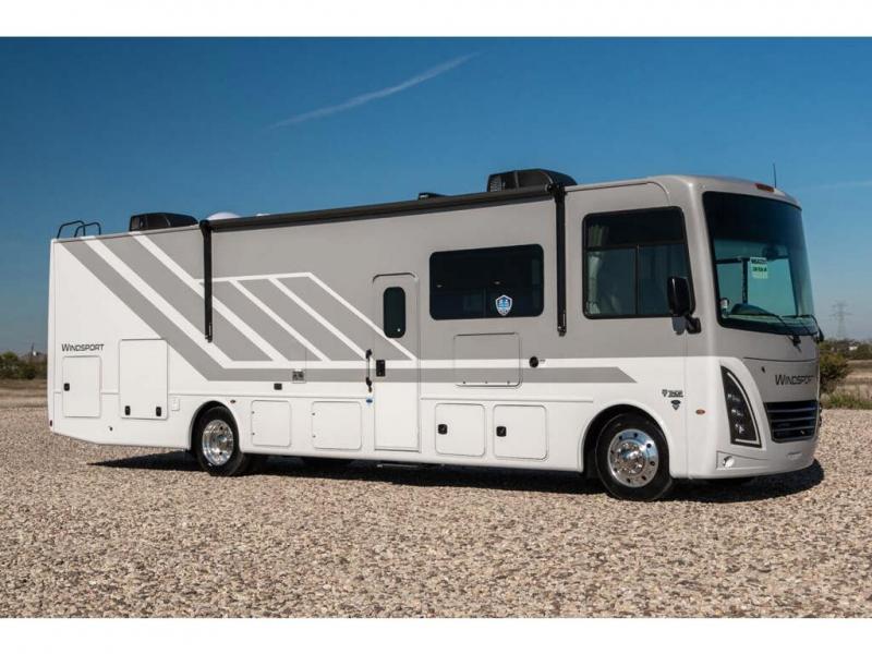 MSRP $223,559. New 2026 Thor Motor Coach Windsport 35J is approximately 35 feet in length with 9 slides including a king size bed, bunk beds, exterior kitchen, full wall slide and automatic leveling jacks. This beautiful new motorhome also features the new Ford chassis with 7.3L PFI V-8, a 6-speed TorqShift® automatic transmission, an updated instrument cluster, automatic headlights and a tilt/telescoping steering wheel. The Thor Motor Coach Windsport RV also features tinted one-piece windshield, multiple USB charging ports throughout, Winegard ConnecT WiFi extender +4G, heated and enclosed underbelly, black tank flush, LED ceiling lighting, bedroom TV, LED running and marker lights, power driver's seat, power overhead loft, power patio awning with LED lighting, night shades, flush covered glass stovetop, refrigerator, microwave, and much more. This RV features the optional frameless dual pane windows. Shop hundreds of class A motorhomes all at 1 location! Choose from Thor A.C.E. – Resonate – Hurricane – Windsport – Luminate – Indigo – Vegas – Axis – Challenger – Miramar Fleetwood Flair – Fortis – Flex – Bounder - Forest River Georgetown - FR3 – Entegra Coach Vision – Vision XL – Emblem – Holiday Rambler Admiral – Eclipse – Invicta – Vacationer - and much more. We also sell quality pre-owned models such as Jayco Alante SE – Alante – Precept – Precept Prestige – Tiffin Allegro Open Road – Newmar Canyon Star – Bay Star – Winnebago Vista – Sunstar – Adventurer – Coachmen Mirada – Pursuit - Encore and much more. Visit MHSRV.com for our complete line-up and the sale prices that have made us the #1 volume selling motor home dealership in the world 12 years in a row! For additional details on this unit and our entire inventory including brochures, window sticker, videos, photos, reviews & testimonials as well as additional information about Motor Home Specialist and our manufacturers please visit us at MHSRV.com or call 800-335-6054. At Motor Home Specialist, we DO NOT charge any prep or orientation fees like you will find at other dealerships. All sale prices include a 200-point inspection, interior & exterior wash, detail service and a fully automated high-pressure rain booth test and coach wash that is a standout service unlike that of any other in the industry. You will also receive a thorough coach orientation with an MHSRV technician, a night stay in our delivery park featuring landscaped and covered pads with full hook-ups and much more! Read Thousands upon Thousands of 5-Star Reviews at MHSRV.com and See What They Had to Say About Their Experience at Motor Home Specialist. WHY PAY MORE? WHY SETTLE FOR LESS?