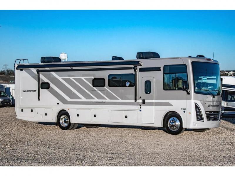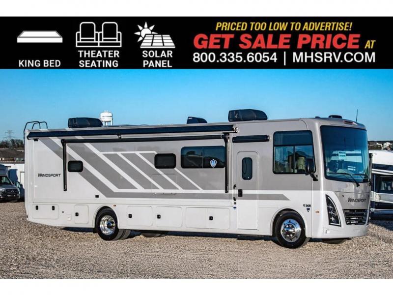 MSRP $224,196. New 2026 Thor Motor Coach Windsport 35R is approximately 36 feet in length with 2 slides including a full wall slide, king size bed, exterior TV and automatic leveling jacks. This beautiful new motorhome also features the new Ford chassis with 7.3L PFI V-8, a 6-speed TorqShift® automatic transmission, an updated instrument cluster, automatic headlights and a tilt/telescoping steering wheel. The Thor Motor Coach Windsport RV also features tinted one-piece windshield, multiple USB charging ports throughout, Winegard ConnecT WiFi extender +4G, heated and enclosed underbelly, black tank flush, LED ceiling lighting, bedroom TV, LED running and marker lights, power driver's seat, power overhead loft, power patio awning with LED lighting, night shades, flush covered glass stovetop, refrigerator, microwave, and much more. This RV features the optional frameless dual pane windows. Shop hundreds of class A motorhomes all at 1 location! Choose from Thor A.C.E. – Resonate – Hurricane – Windsport – Luminate – Indigo – Vegas – Axis – Challenger – Miramar Fleetwood Flair – Fortis – Flex – Bounder - Forest River Georgetown - FR3 – Entegra Coach Vision – Vision XL – Emblem – Holiday Rambler Admiral – Eclipse – Invicta – Vacationer - and much more. We also sell quality pre-owned models such as Jayco Alante SE – Alante – Precept – Precept Prestige – Tiffin Allegro Open Road – Newmar Canyon Star – Bay Star – Winnebago Vista – Sunstar – Adventurer – Coachmen Mirada – Pursuit - Encore and much more. Visit MHSRV.com for our complete line-up and the sale prices that have made us the #1 volume selling motor home dealership in the world 12 years in a row! For additional details on this unit and our entire inventory including brochures, window sticker, videos, photos, reviews & testimonials as well as additional information about Motor Home Specialist and our manufacturers please visit us at MHSRV.com or call 800-335-6054. At Motor Home Specialist, we DO NOT charge any prep or orientation fees like you will find at other dealerships. All sale prices include a 200-point inspection, interior & exterior wash, detail service and a fully automated high-pressure rain booth test and coach wash that is a standout service unlike that of any other in the industry. You will also receive a thorough coach orientation with an MHSRV technician, a night stay in our delivery park featuring landscaped and covered pads with full hook-ups and much more! Read Thousands upon Thousands of 5-Star Reviews at MHSRV.com and See What They Had to Say About Their Experience at Motor Home Specialist. WHY PAY MORE? WHY SETTLE FOR LESS?