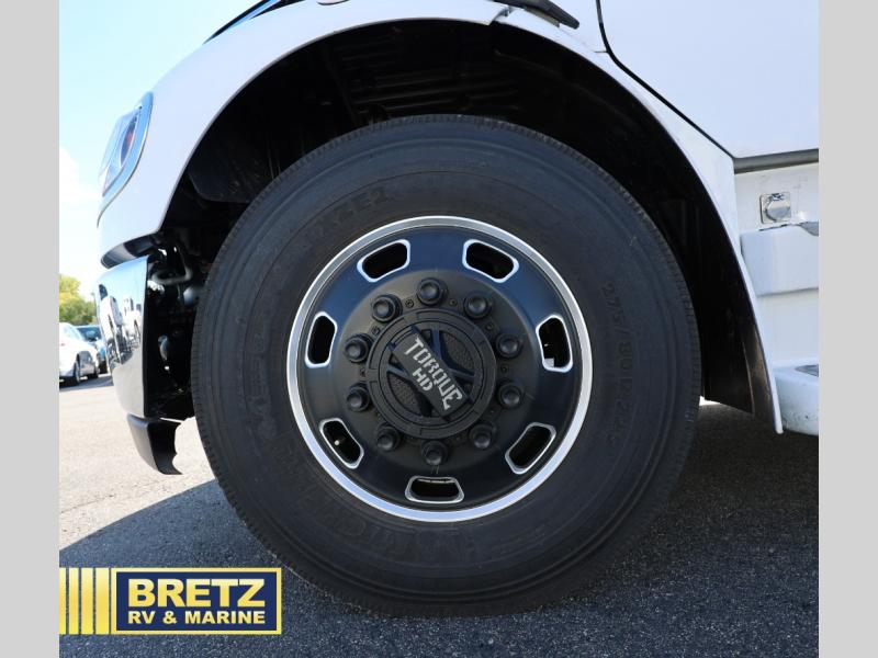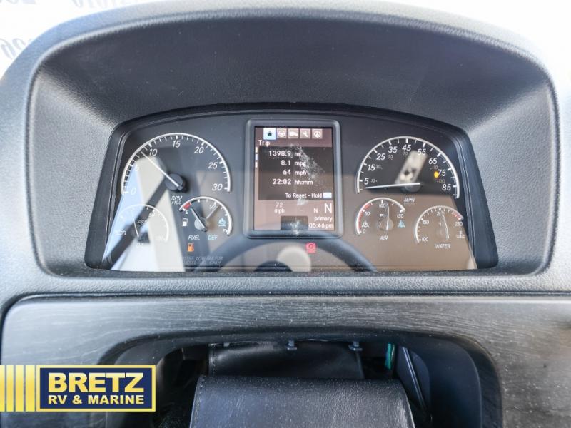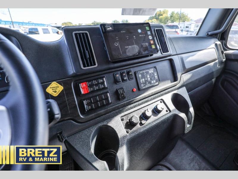 Each Allegro Bay Super C diesel coach by Tiffin Motorhomes sits on a durable Freightliner Custom S2RV chassis with an impressive 360 HP Cummins B6.7 engine for power you can feel. You will appreciate smooth handling thanks to the Trac-Tech full-time NoSPIN differential single rear axle and the automatic traction control. There is a manual release valve for the rear air suspension for added convenience, plus a 12,000 lb. towing capacity that will allow you to bring along the family car or even a horse trailer! This coach includes a Truma AquaGo Comfort instant water heater, AGM extended cycle house batteries, an 8.0 Onan Quiet Diesel generator, plus many more top of the line amenities. You will also love the Generation 3 paint schemes, an exterior ladder, plus optional Starlink prep in the sewer bay that will give you the option to have internet while you're away from home!