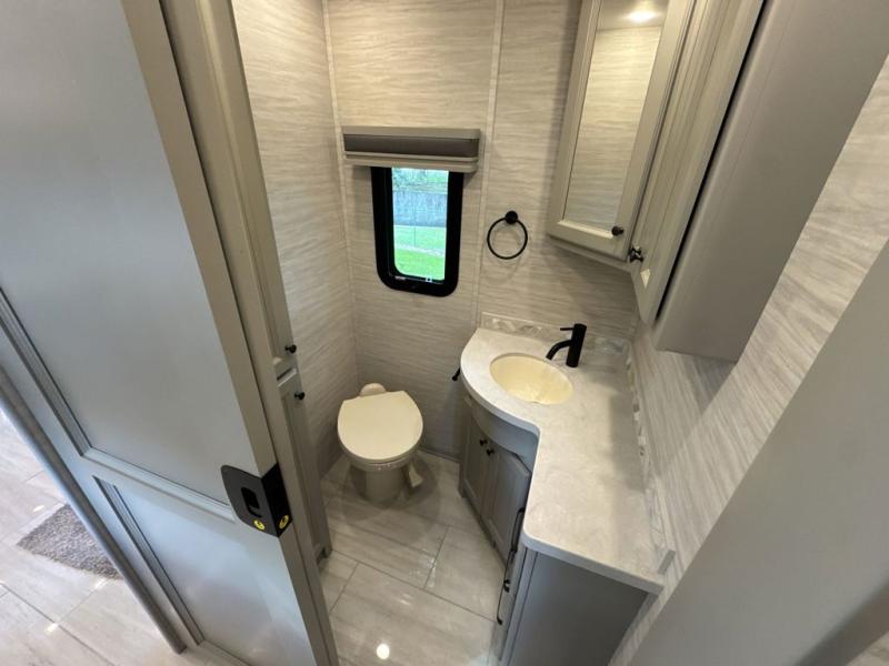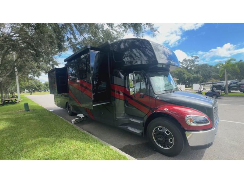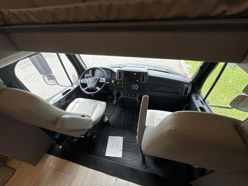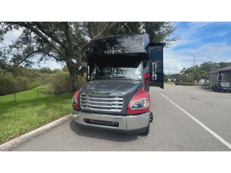 Each Allegro Bay Super C diesel coach by Tiffin Motorhomes sits on a durable Freightliner Custom S2RV chassis with an impressive 360 HP Cummins B6.7 engine for power you can feel. You will appreciate smooth handling thanks to the Trac-Tech full-time NoSPIN differential single rear axle and the automatic traction control. There is a manual release valve for the rear air suspension for added convenience, plus a 12,000 lb. towing capacity that will allow you to bring along the family car or even a horse trailer! This coach includes a Truma AquaGo Comfort instant water heater, AGM extended cycle house batteries, an 8.0 Onan Quiet Diesel generator, plus many more top of the line amenities. You will also love the Generation 3 paint schemes, an exterior ladder, plus optional Starlink prep in the sewer bay that will give you the option to have internet while you're away from home!