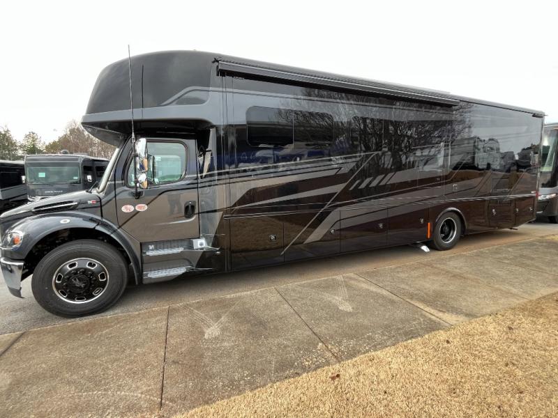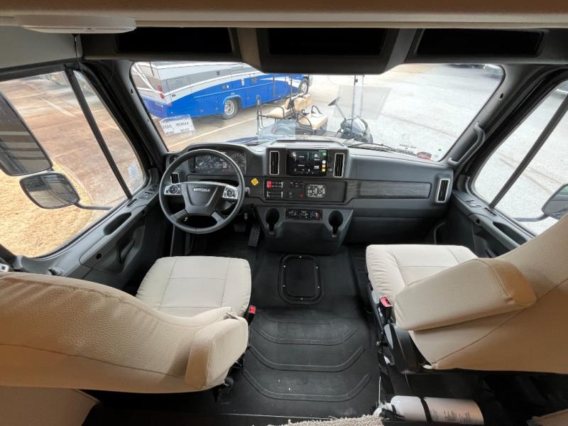 Each Allegro Bay Super C diesel coach by Tiffin Motorhomes sits on a durable Freightliner Custom S2RV chassis with an impressive 360 HP Cummins B6.7 engine for power you can feel. You will appreciate smooth handling thanks to the Trac-Tech full-time NoSPIN differential single rear axle and the automatic traction control. There is a manual release valve for the rear air suspension for added convenience, plus a 12,000 lb. towing capacity that will allow you to bring along the family car or even a horse trailer! This coach includes a Truma AquaGo Comfort instant water heater, AGM extended cycle house batteries, an 8.0 Onan Quiet Diesel generator, plus many more top of the line amenities. You will also love the Generation 3 paint schemes, an exterior ladder, plus optional Starlink prep in the sewer bay that will give you the option to have internet while you're away from home!