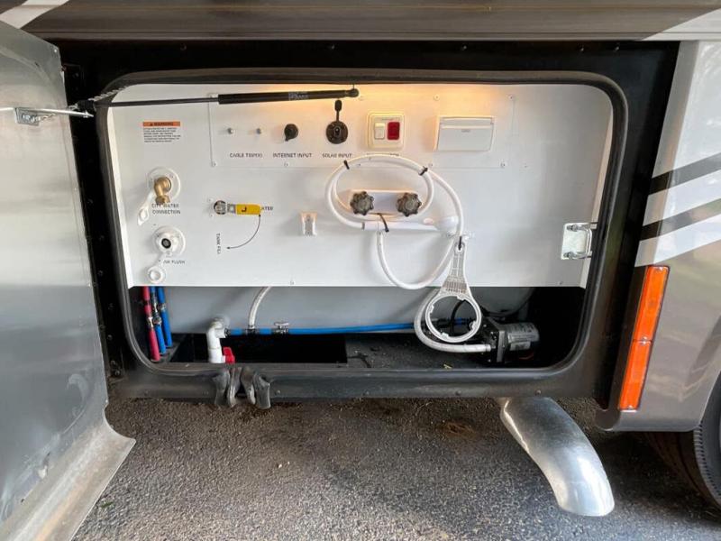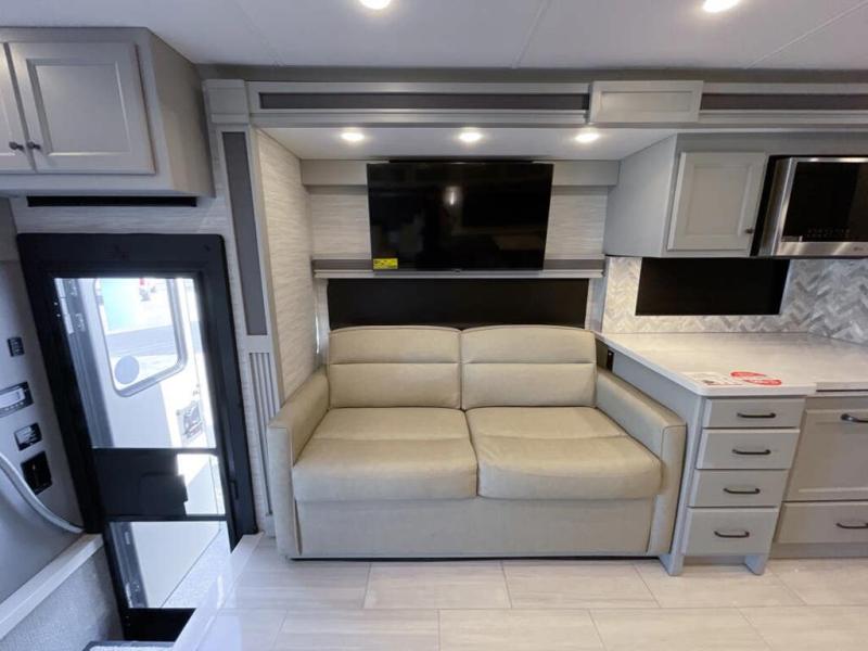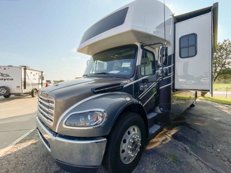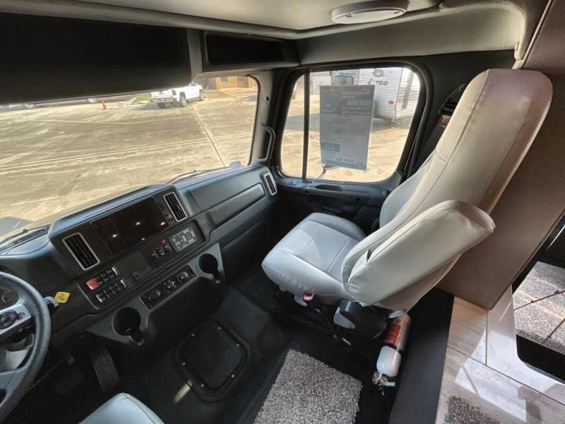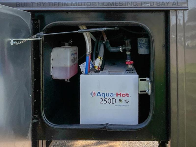 Each Allegro Bay Super C diesel coach by Tiffin Motorhomes sits on a durable Freightliner Custom S2RV chassis with an impressive 360 HP Cummins B6.7 engine for power you can feel. You will appreciate smooth handling thanks to the Trac-Tech full-time NoSPIN differential single rear axle and the automatic traction control. There is a manual release valve for the rear air suspension for added convenience, plus a 12,000 lb. towing capacity that will allow you to bring along the family car or even a horse trailer! This coach includes a Truma AquaGo Comfort instant water heater, AGM extended cycle house batteries, an 8.0 Onan Quiet Diesel generator, plus many more top of the line amenities. You will also love the Generation 3 paint schemes, an exterior ladder, plus optional Starlink prep in the sewer bay that will give you the option to have internet while you're away from home!