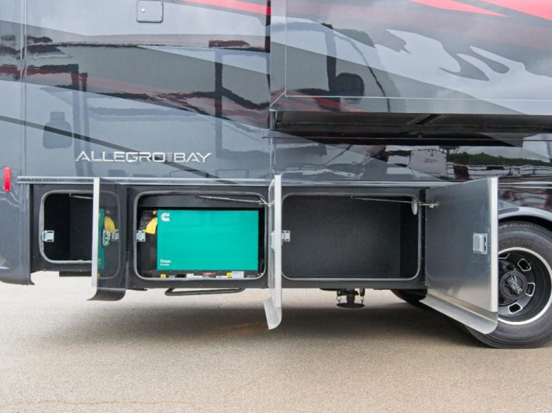 Powered by a 360 HP Cummins B6.7 engine on a Freightliner Custom S2RV chassis, the Allegro Bay delivers smooth handling and impressive towing capacity—up to 12,000 lbs. Enjoy premium features like Trac-Tech NoSPIN differential, automatic traction control, and a manual rear air suspension release valve for added control.