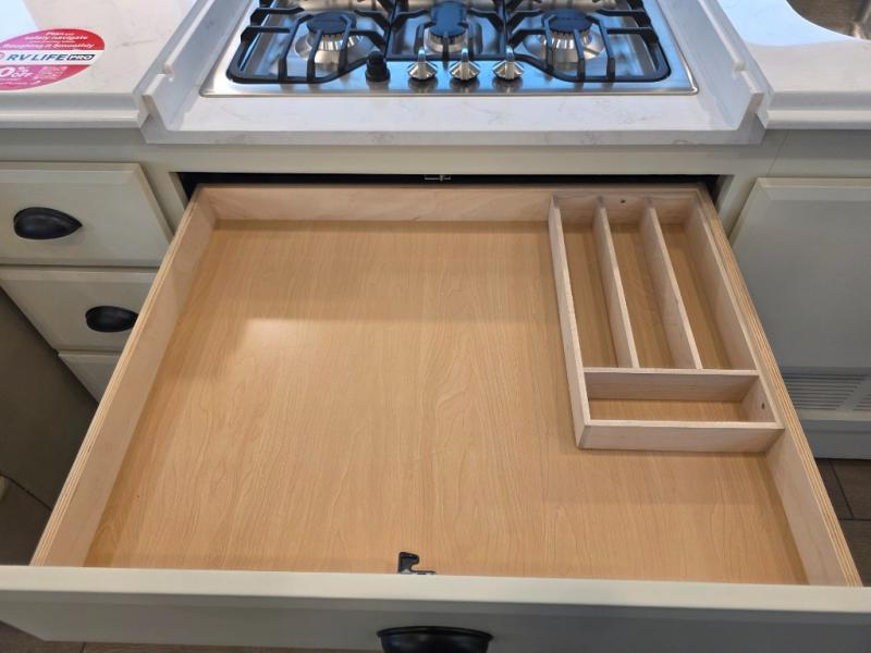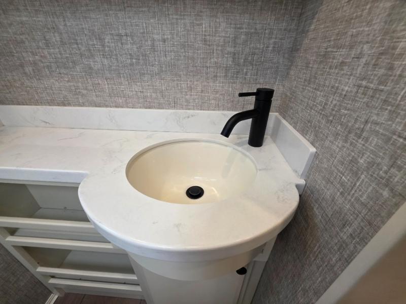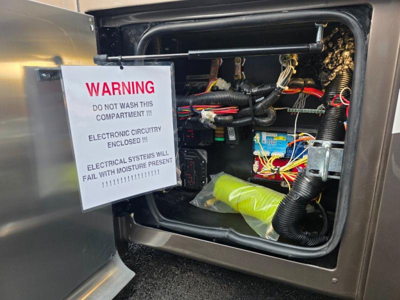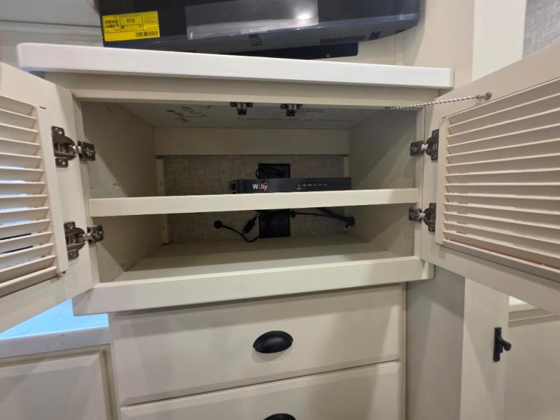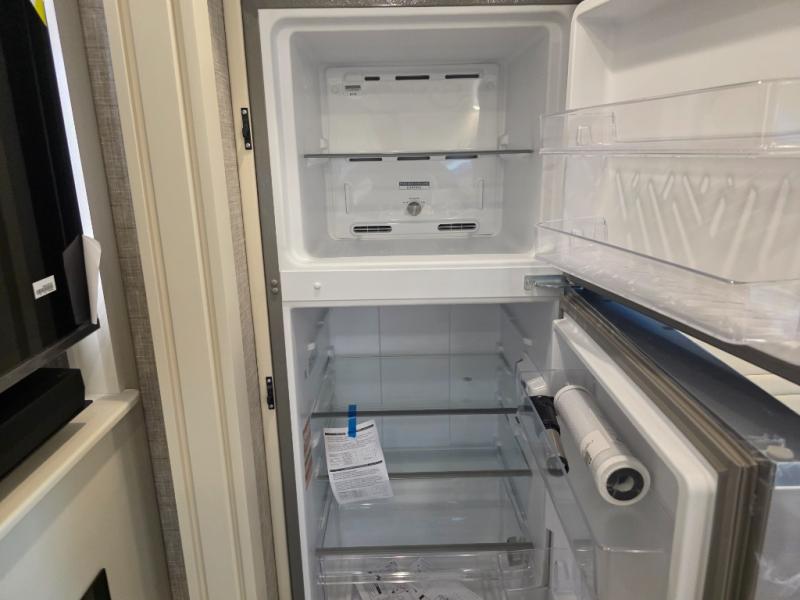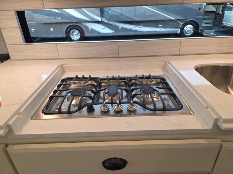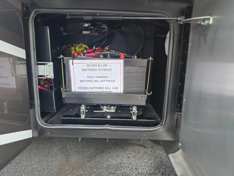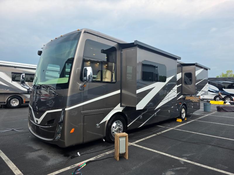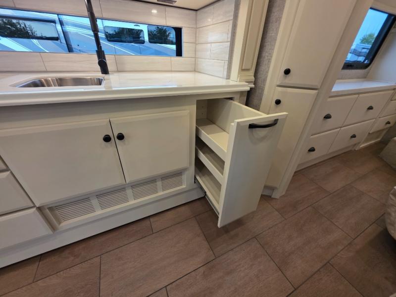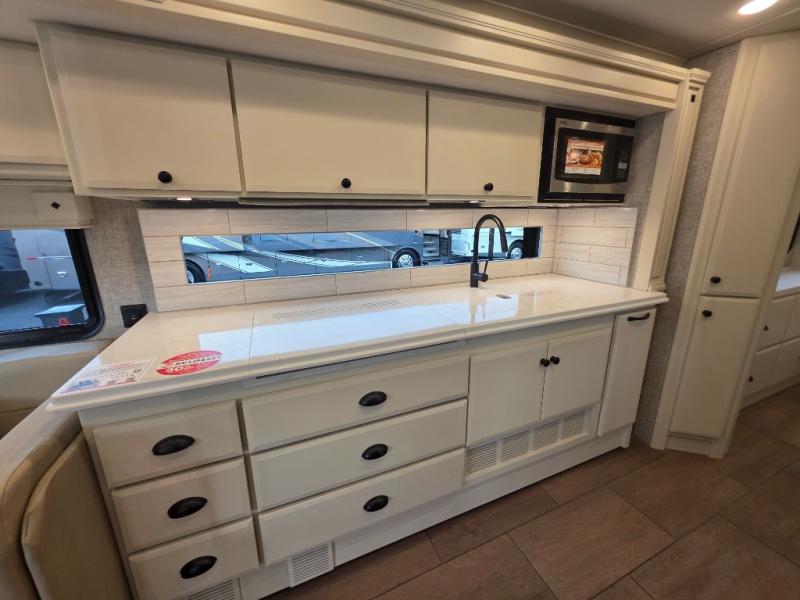 Pack your bags and load up into this motorhome for a luxurious adventure! The rear private bedroom has a king bed slide that can be switched for an optional queen bed, a bank of drawers next to a TV, a large closet, and a wardrobe that is prepped to add an optional washer and dryer so you can have clean clothes throughout your entire trip. The full bathroom has a shower skylight, gravity flush toilet, solid surface countertop, and a handheld shower head with a slide bar for added convenience. When you're ready to eat, just whip up a meal on the three burner propane cooktop or use the convection microwave. You can dine at the booth dinette, or maybe switch out the dinette for an optional dinette computer workstation with a lift TV! You can spend your evenings with a movie since there is a living area TV with an optional fireplace, or you can head outdoor to enjoy the exterior TV and Girard power awning with LED lights!