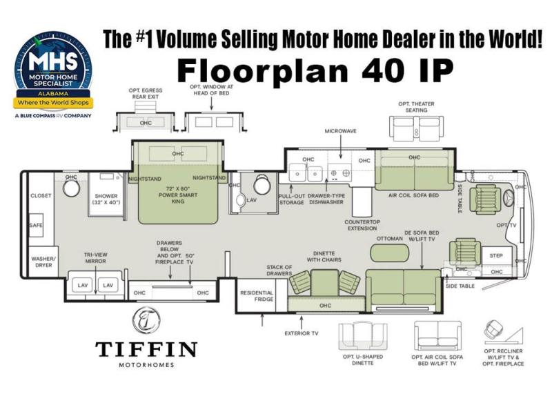 Tiffin Motorhomes Allegro Bus Class A diesel motorhome 40 IP highlights: