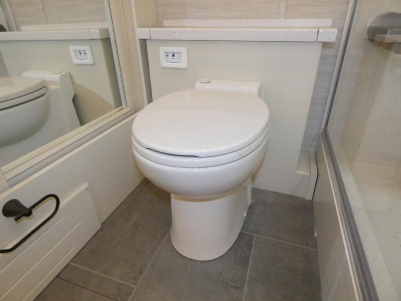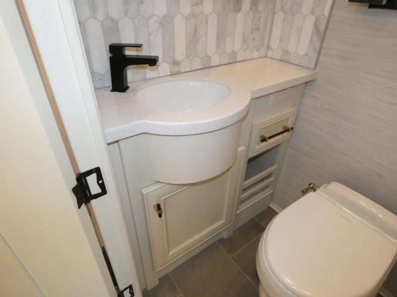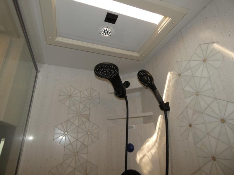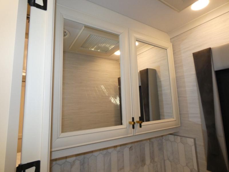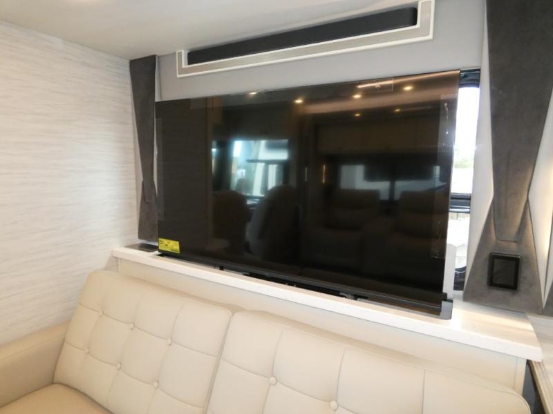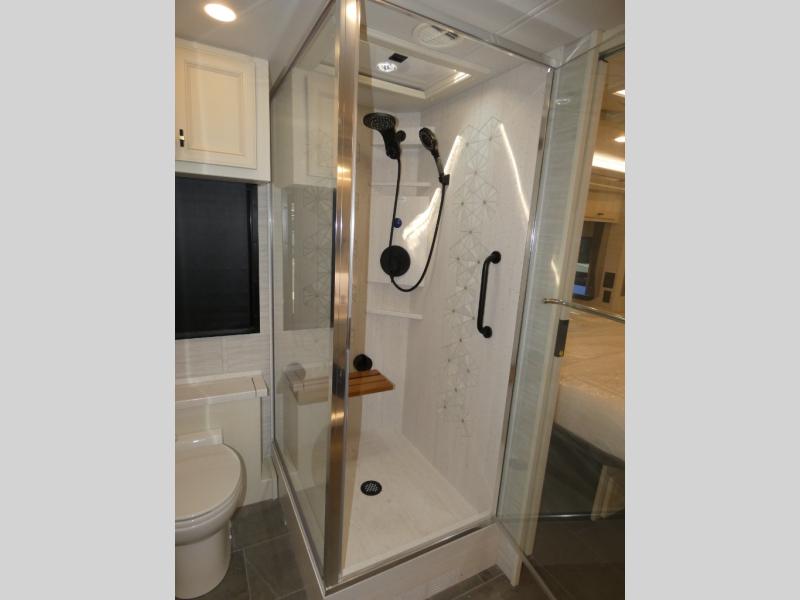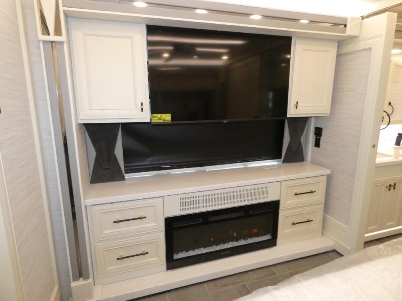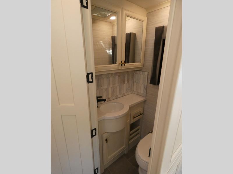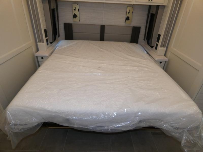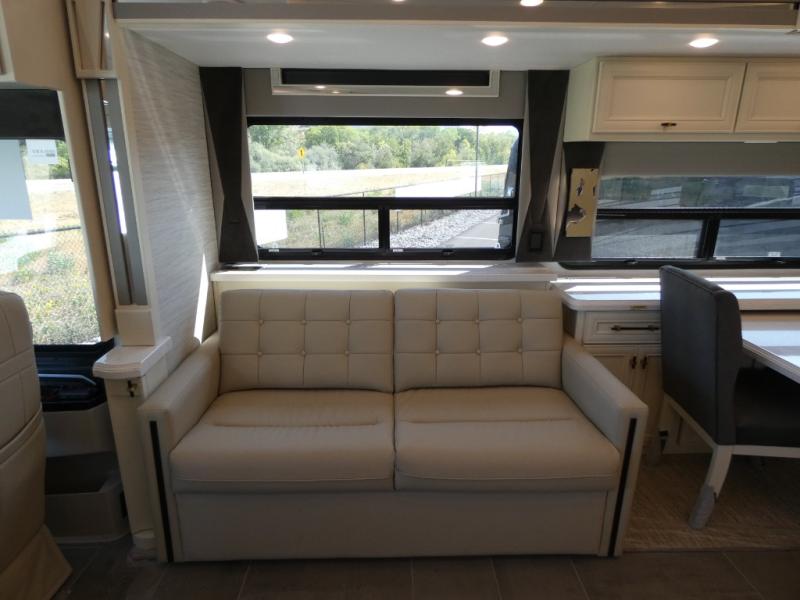Now you can travel with more friends and family in this coach that includes a bath and a half. The master bedroom includes a king bed, 50" TV, plus dual nightstands for your belongings. Dual bath sinks in the full rear bath allow two people to freshen up at once, and a stacked washer and dryer to make wash day a breeze. And check out the kitchen with its residential refrigerator, pantry, stainless steel convection microwave, and drawer-type dishwasher! You will also appreciate the countertop extension for more prep space when it's time for dinner. The dinette with chairs provides a place to dine or get some work done.