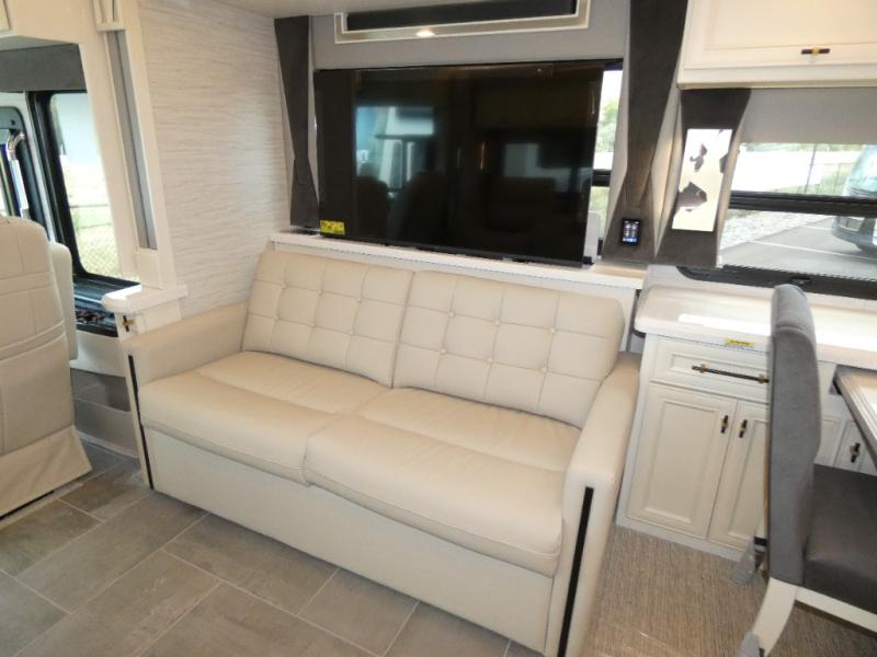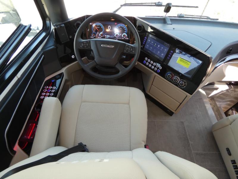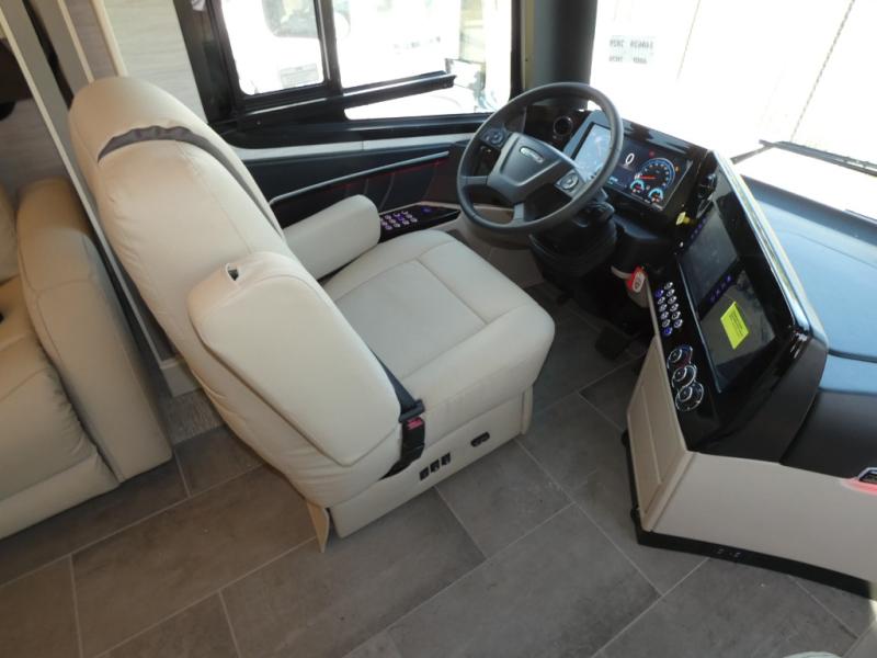 With any Allegro Bus Class A diesel coaches by Tiffin Motorhomes you will experience ultimate luxury, breakthrough technology, and unmatched power thanks to the 450 HP Cummins L9 engine. Each model sits upon a PowerGlide raised rail rear engine diesel chassis for a smooth ride, and you are sure to turn heads with the premium paint system. The captain's job is made easier than ever with the adaptive cruise control, the collision mitigation with forward warning and active braking, and the Valid LCD instrument cluster display with integrated leveling controls. This hydronic heating and electronic appliance-equipped coach features two Girard roof awnings, an Onan 10.0 kW generator, and three 15,000 BTU A/C units to keep you comfortable all year long. New and exciting features include a drawer-style dishwasher on each model, Gold Heat dual zones heated tile floors, a standard exterior ladder, Starlink Pro with a subscription, and more!