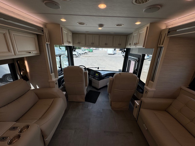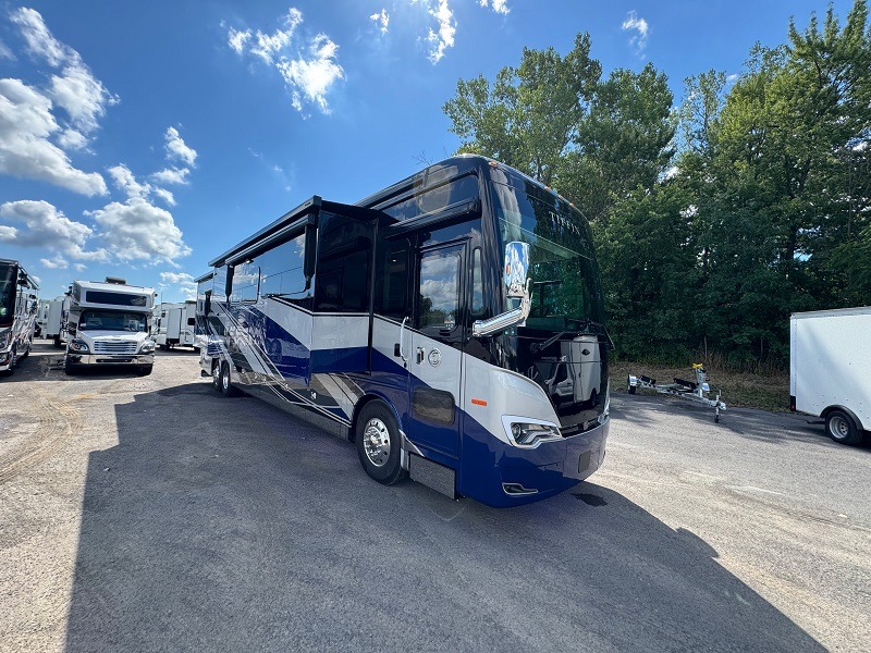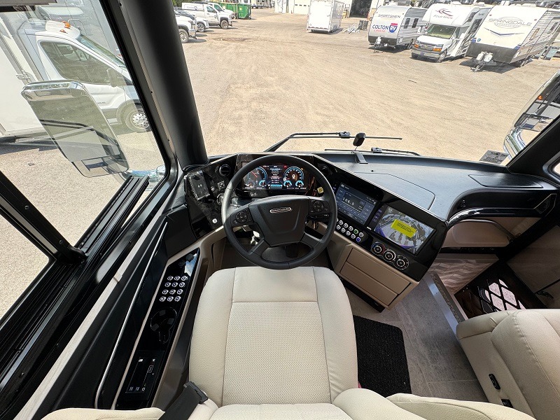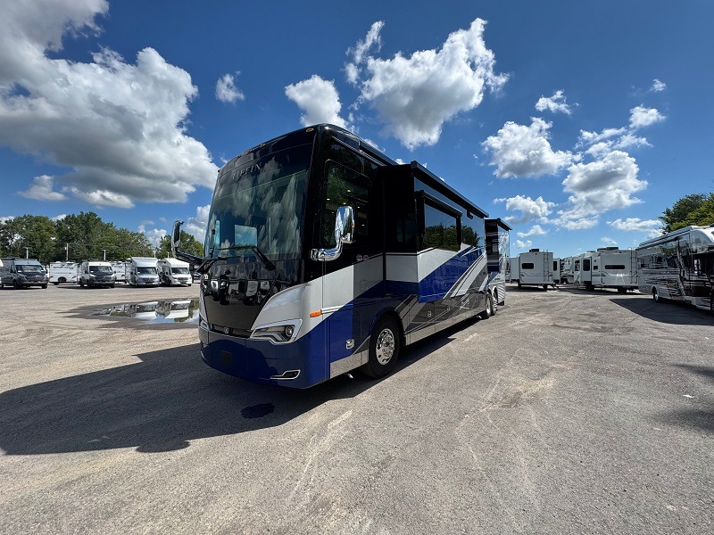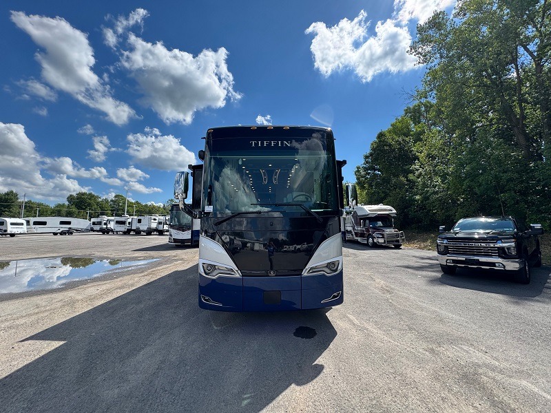 With any Allegro Bus Class A diesel coaches by Tiffin Motorhomes you will experience ultimate luxury, breakthrough technology, and unmatched power thanks to the 450 HP Cummins L9 engine. The captain's job is made easier than ever with the adaptive cruise control, the collision mitigation with forward warning and active braking, and the Valid instrument cluster display with integrated leveling controls. This hydronic heating and electronic appliance-equipped coach features two Girard roof awnings, an Onan 10.0 kW generator, and three 15,000 BTU A/C units to keep you comfortable all year long. New and exciting features include a drawer-style dishwasher on each model, Gold Heat dual zones heated tile floors, Starlink Pro with a subscription, and more!