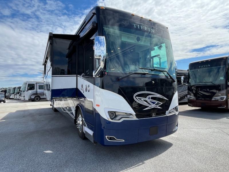 With any Allegro Bus Class A diesel coaches by Tiffin Motorhomes you will experience ultimate luxury, breakthrough technology, and unmatched power thanks to the 450 HP Cummins L9 engine. The captain's job is made easier than ever with the adaptive cruise control, the collision mitigation with forward warning and active braking, and the Valid instrument cluster display with integrated leveling controls. This hydronic heating and electronic appliance-equipped coach features two Girard roof awnings, an Onan 10.0 kW generator, and three 15,000 BTU A/C units to keep you comfortable all year long. You will also enjoy the handcrafted cabinetry, solid surface galley countertops, and Gold Heat dual zones heated tile floor to name a few luxuries! New and exciting features a Mobileye lane departure warning system, new Generation 15 exterior paint options, new interior decor options, and more!
