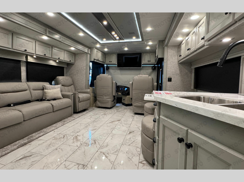 There are many, many reasons you'll instantly fall in love with this Allegro RED Class A diesel motorhome! You have three TVs including an exterior one to keep everyone entertained, and the kitchen is filled with tons of tools to create delicious meals, like a 1.7 cu. ft. smart convection microwave with air fry, 20 cu. ft. stainless steel residential refrigerator with top freezer, pantry, double-bowl sink, and panoramic galley window. You'll also be quite impressed with the full bathroom that has a one-piece fiberglass shower, roof vent fan, solid-surface vanity top, and a skylight and LED light in the shower. If you need more sleeping space in addition to the 72" x 80" king bed, air coil sofa bed, a booth dinette sleeper, you could switch out for three different seating choices, including an optional super sofa or U-shaped dinette!