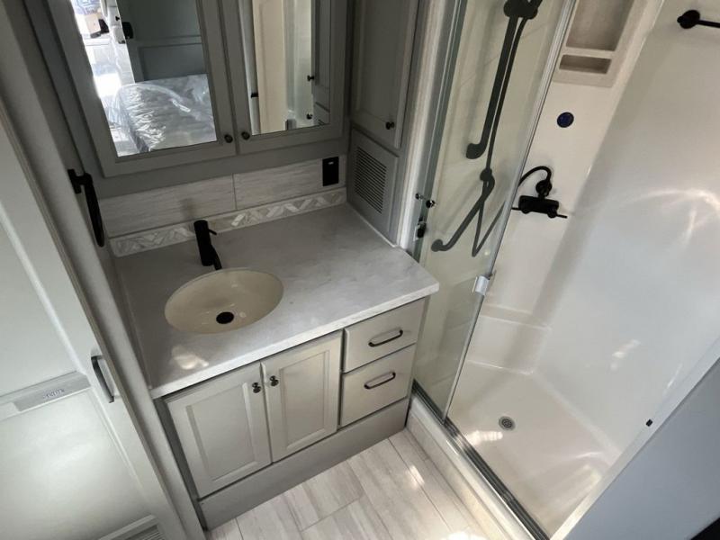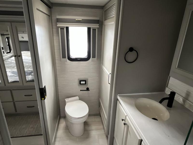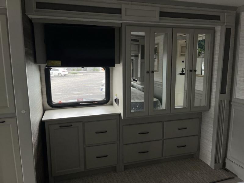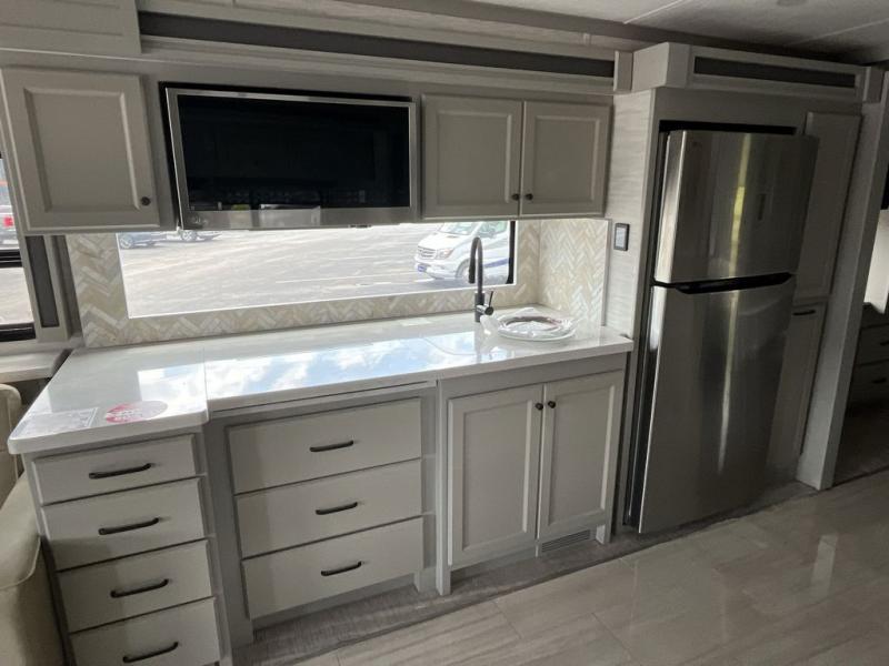 If luxury is what you want, luxury is what you'll get with this Allegro RED Class A diesel motorhome! Glamorous furnishings and high-class style are included all throughout this coach. One of the best features is going to be the master suite. This space has a private bedroom connected to its own private bathroom. The king bed slide sits across from the full-wall slide, so there is plenty of space to change your clothes and just relax. There is a TV next to the wardrobe and across from the bed for easy viewing at night, and the bathroom has a place for the optional washer/dryer to be added. Out in the main living area, the rest of your traveling companions can use the half bathroom to clean up, and there is plenty of seating for everyone to lounge on with the booth dinette sleeper and two sofas. If you would like to have more sleeping space, you can add the optional drop-down bunk above the cab.