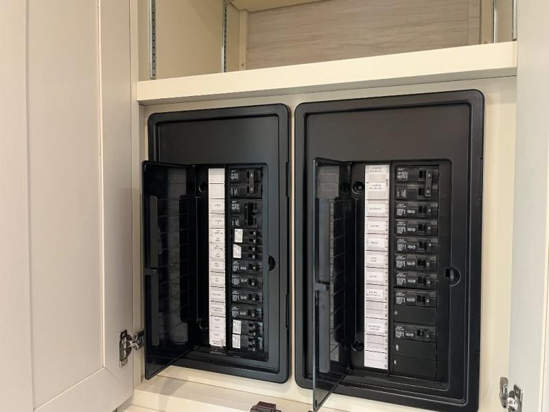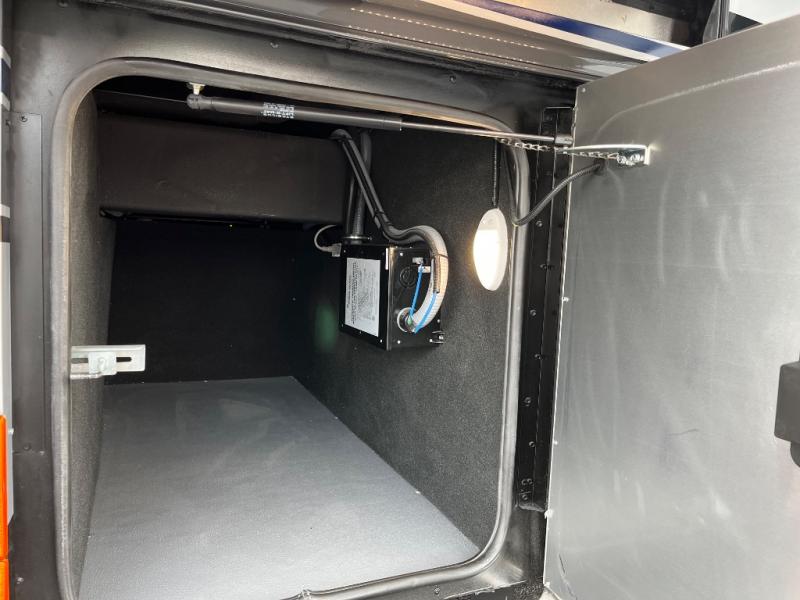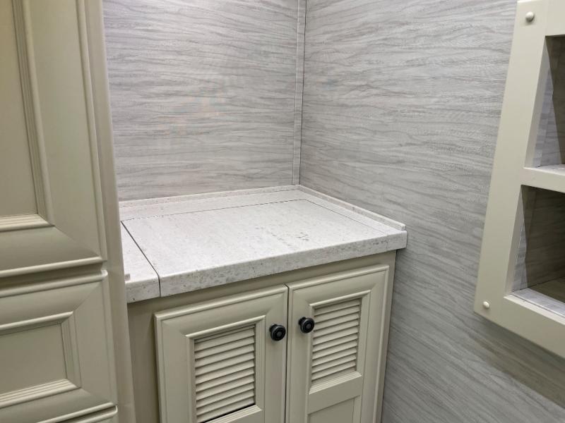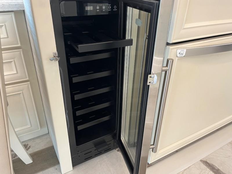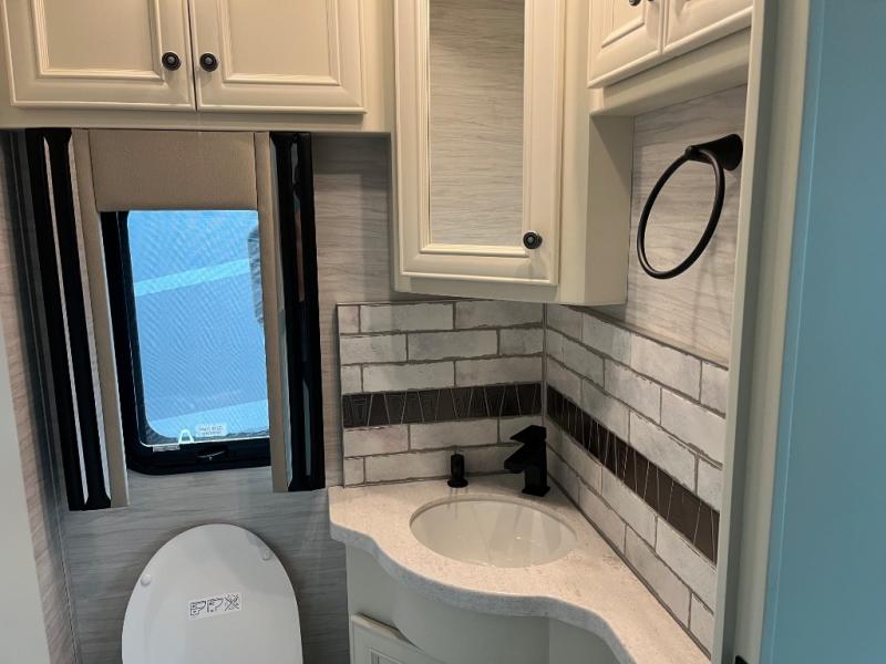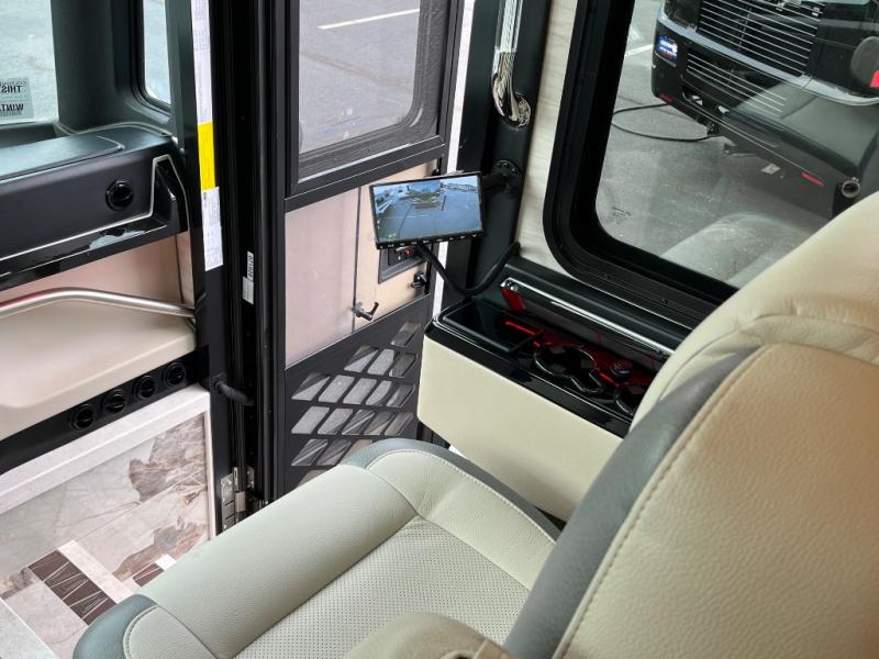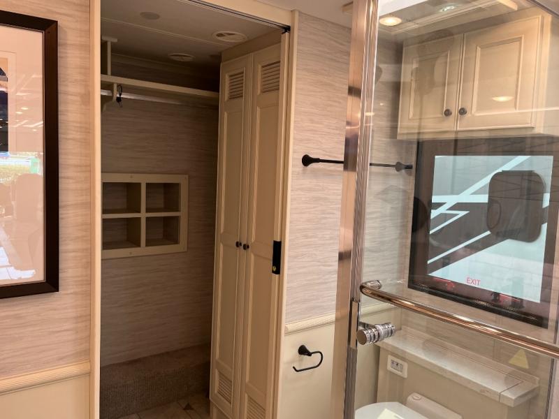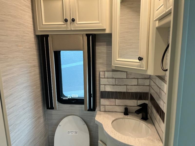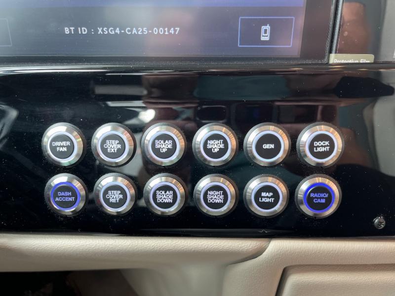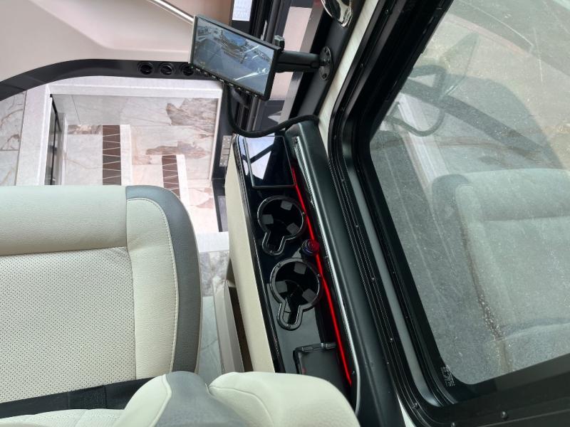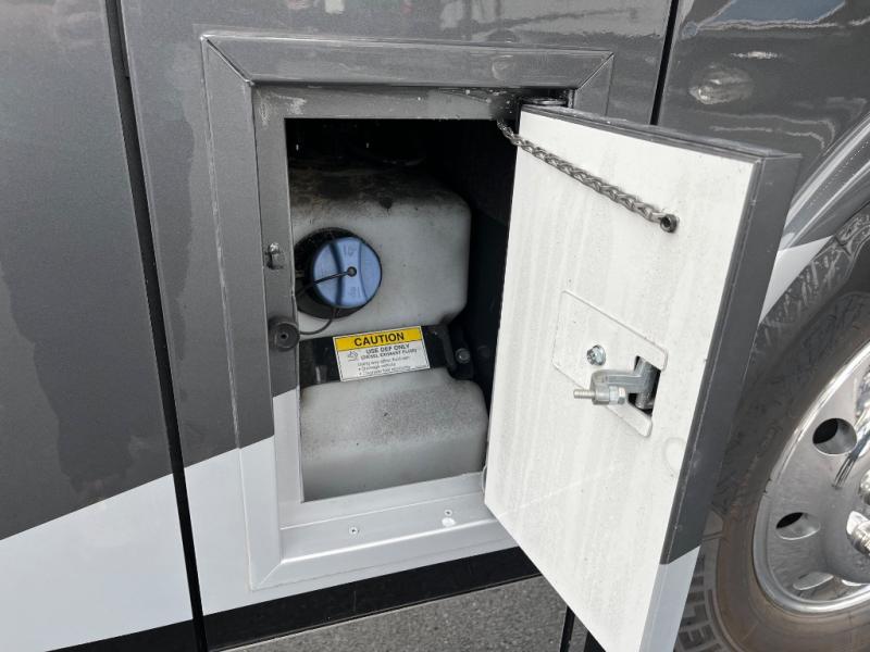 Get ready for luxury trips both near and far in this spacious coach! Once you find somewhere to park for the night, you can cook dinner on the two burner induction cooktop or in the 1.7 cu. ft. Smart convection microwave with an air fryer. There is an Expand-An-Island for more prep space plus pull-out storage and a drawer-type dishwasher to make clean up easier than ever. You can then relax on the DE sofa bed with a lift TV above it or on the air coil sofa bed with an ottoman. There is also a dinette with chairs where you can dine together or get some work done while you're away from home. And the half bath off of the kitchen is convenient for everyone. A master bedroom is sure to meet your needs with a power Smart king bed slide with dual nightstands, a 50" TV, and drawers below an optional fireplace. The feature you might like most on this coach is the full rear bath! Here, you'll find dual bath sinks with a tri-view mirror, a spacious shower, and a floor-to-ceiling closet, complete with storage cabinets, a safe plus prep for a washer and dryer!