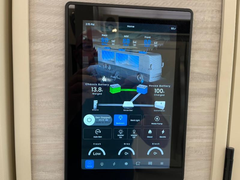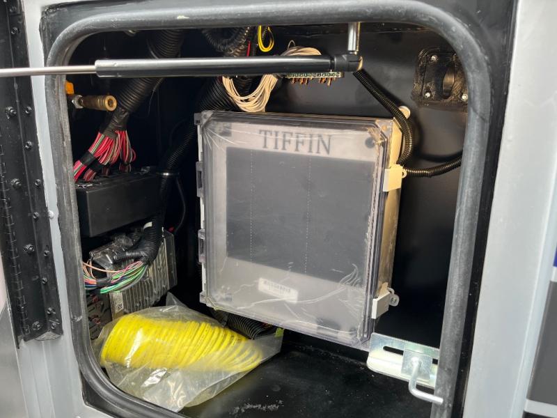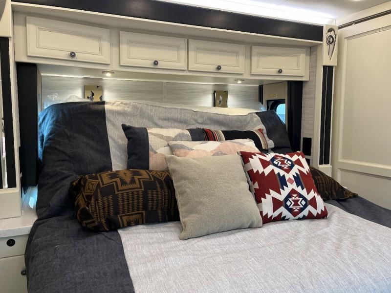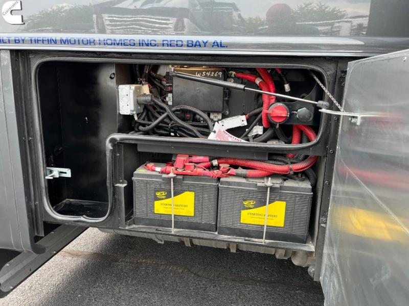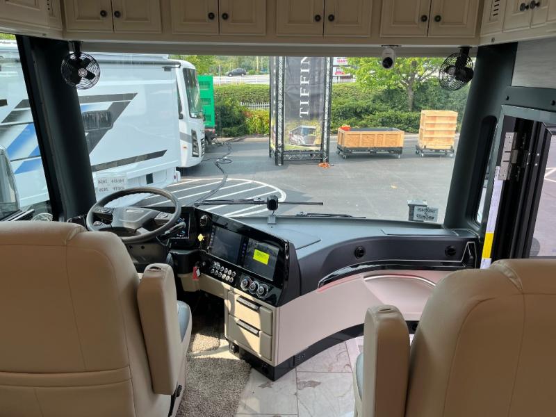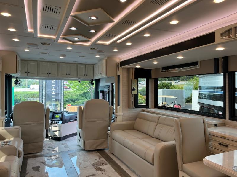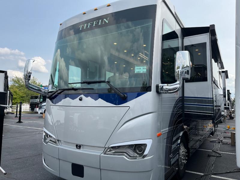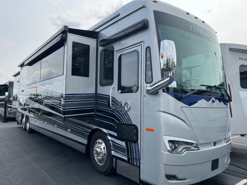 The Bob Tiffin Limited Edition Bus by Tiffin Motorhomes is specifically designed with Tiffin Motorhomes', founder Bob Tiffin in mind! This Class A diesel coach sits on a durable PowerGlide raised rail rear engine diesel chassis with a powerful Cummins L9 450 HP diesel engine. High-end features included are the exterior paint scenes highlighting the Rocky Mountains and the slide fascia that takes after the grill of a Packard, Bob's favorite car! It will be so easy to manage the functions of your coach with a Spyder controls multiplex system, and the 10.0 kW Onan quiet diesel generator will keep you powered up and ready to go. Inside, there are powered solar and privacy shades, egress windows throughout, a central vacuum system with a VacPan automatic dustpan, handcrafted overhead cabinetry, and many more comforts. This is also a hydronic heating and electronic appliances equipped coach and there are three 15k BTU A/C units to keep you comfortable all year long. And we haven't even touched on the exterior features, like the Girard roof-mounted awnings, exterior TV with a soundbar, side-swinging exterior storage doors with gas shocks, and the list goes on. Bob Tiffin's 51 years and counting in the motorhome industry is honored perfectly in this coach, check it out today!