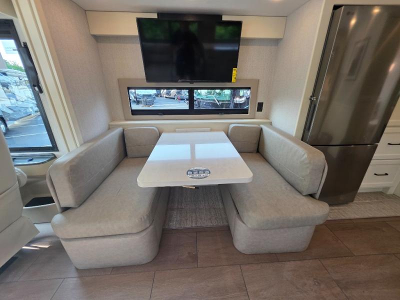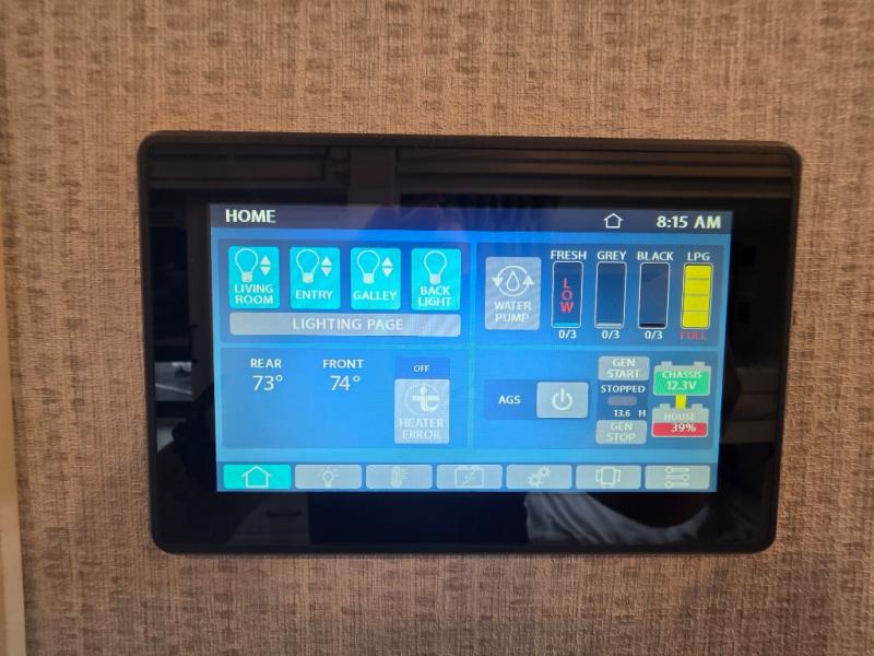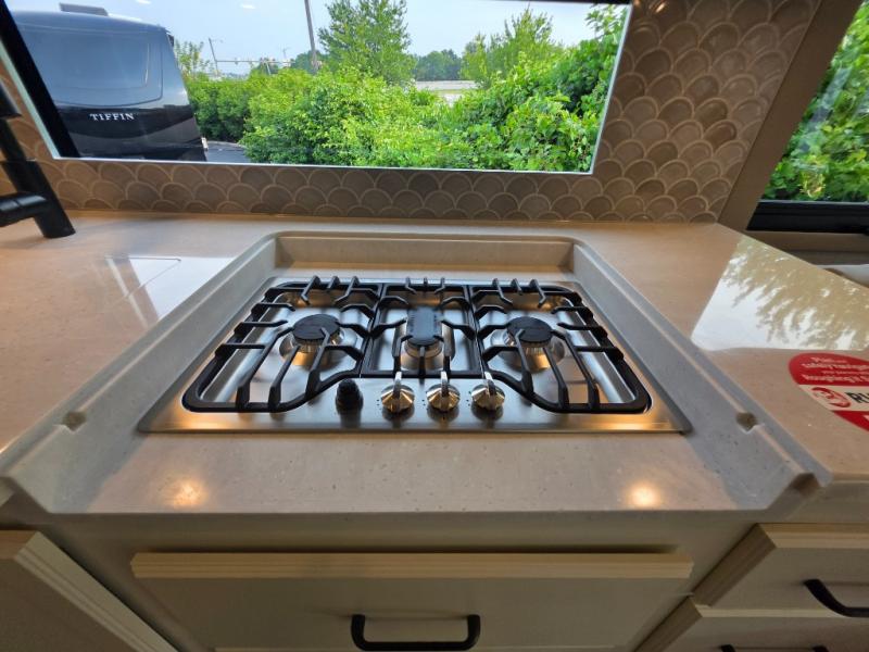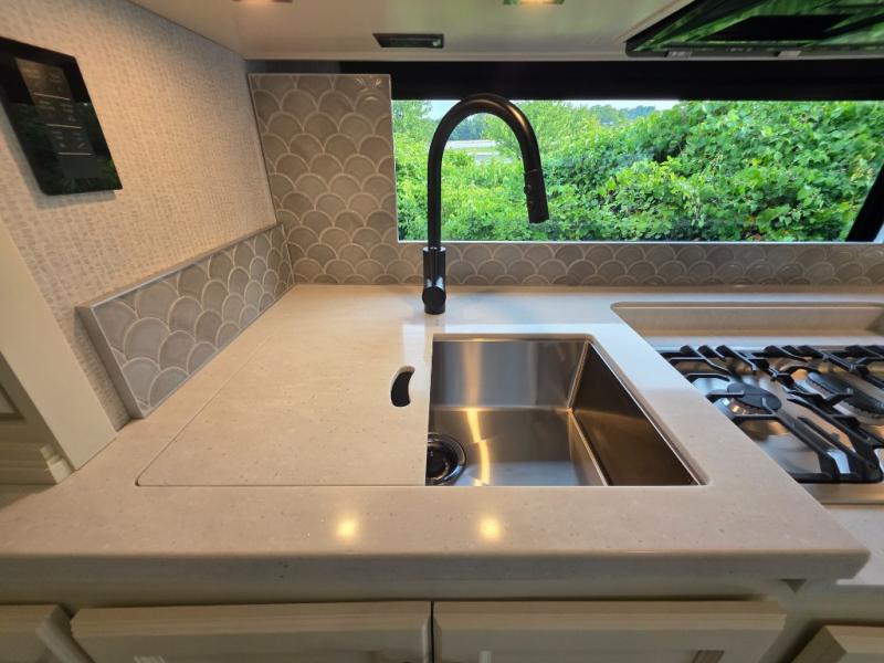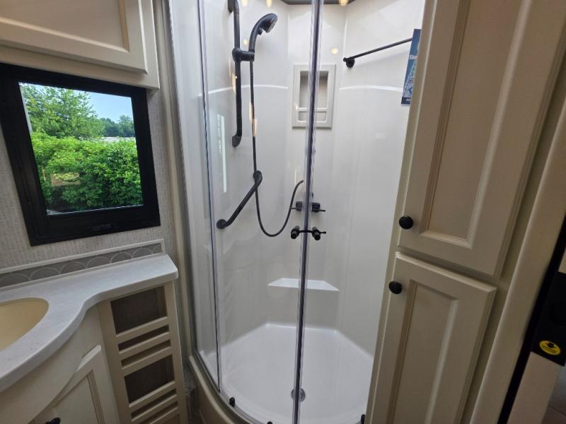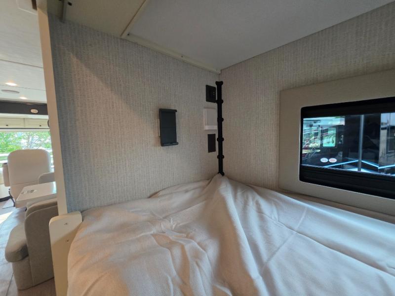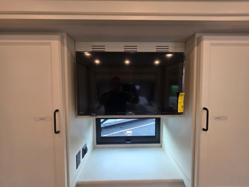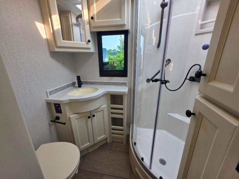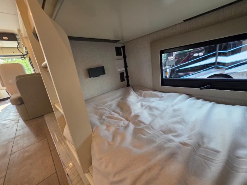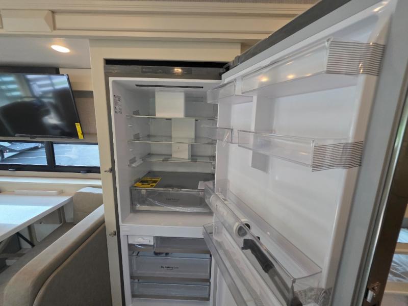 A full-wall slide plus two additional slides provides ample room to stretch out in this coach! It will be so easy to travel with a larger group since there is a full rear bath, bunk beds, plus a second full bath right across the bunks for convenience! You will surely appreciate the master bedroom with dual bedroom wardrobes and nightstands, a king bed slide out, and quick entrance into the rear bath. In the morning, you can prepare breakfast for everyone on the three burner cooktop or in the 1.5 cu. ft. Smart convection microwave, and the perishables can go back in the 18 cu. ft. residential refrigerator when you're done. Your crew can also make themselves comfortable on the air coil sofa and booth dinette sleeper, and these areas can double as sleeping space as well. If you need more sleeping space, you might want to add the optional drop-down front bunk!