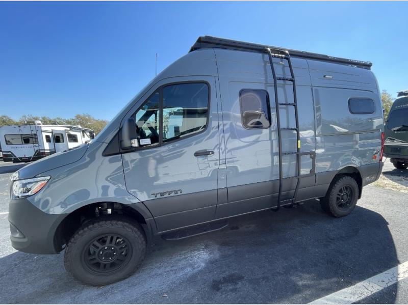 The GH1 by Tiffin is the perfect couples coach that can take you just about anywhere you dream to go. The all-wheel drive chassis is equipped with a Fox Shock suspension package so that you can handle any type of terrain. You will enjoy on-board solar, climate controls with wall-mounted thermostat that features a built-in temperature sensor to keep you comfortable so you can go off the beaten path and stay awhile. Solid surface countertops are easy to clean and the Premium hardwood Plywood with high-pressure laminate lower cabinets pairs nicely with the grey nickel plate thermoplastic polyolefin flooring. Enjoy cooking meals using the portable single-burner induction cooktop and 12-volt 3.1 cu. ft. refrigerator freezer with an integrated whiteboard for your perishables. You are going to love traveling in this class B diesel adventure van that will take you anywhere, even a little off-road!