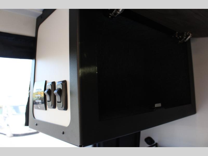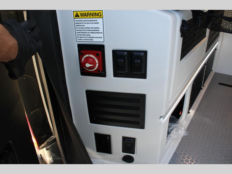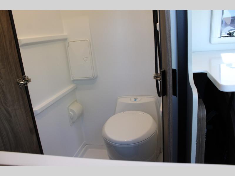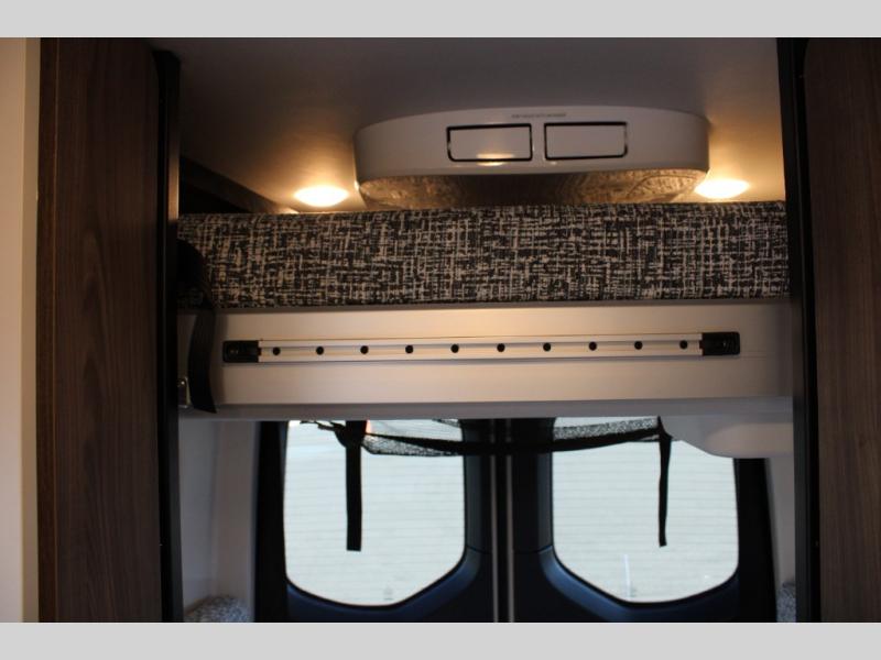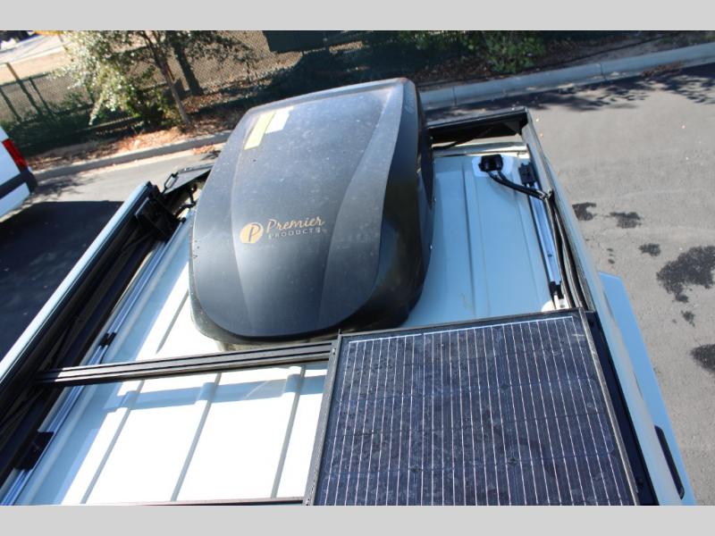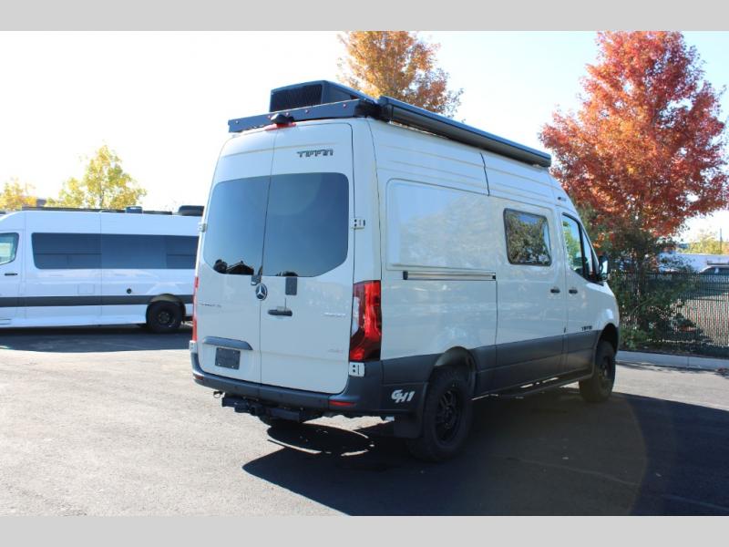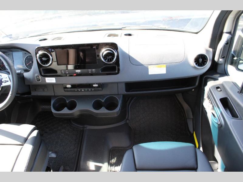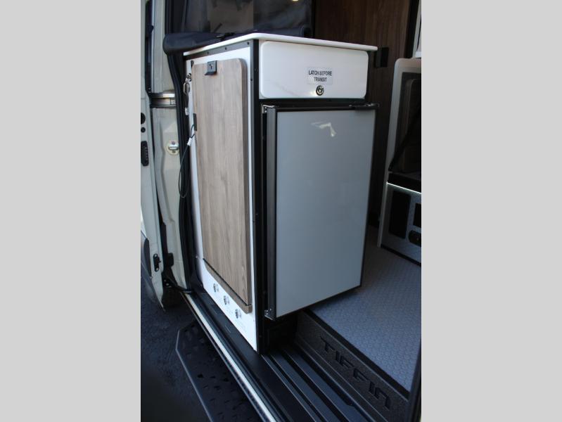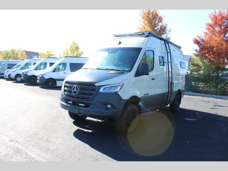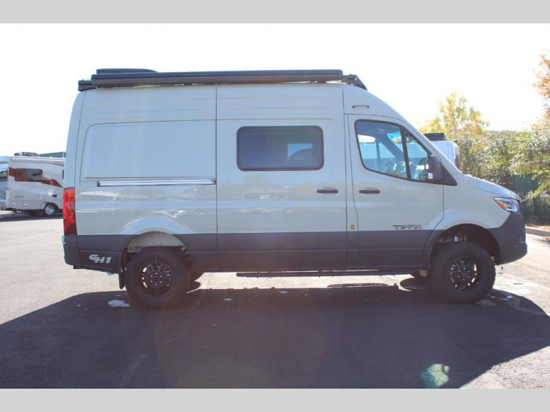 Pick a place, any place, and start packing. This off-road capable diesel van features a 49" x 79" gear garage beneath the power lift bed where you can store camp chairs, paddle boards for the lake, outdoor games and plenty of hiking gear. The on-board wet bath will keep you fresh and clean, and you can easily whip up meals and snacks in the kitchen with a single-burner induction cooktop and refrigerator beneath the counter for your perishables. There is also a sink for cleaning up and a removable counter extension. An optional jump seat and removable wall mounted swivel table behind the driver's seat can accommodate you for meals or a game of cards, or you can choose the optional adventure bar work/storage solution in place of the jump seat. Both front driver and passenger seats swivel to the back so you'll have plenty of seating even with company. At night, the power lift bed will allow you to get a great night's rest so you can enjoy it all again the next day!