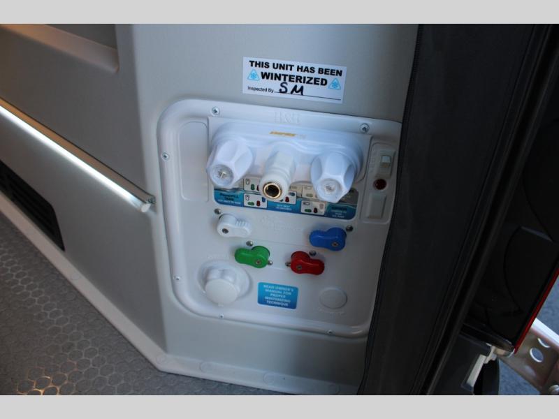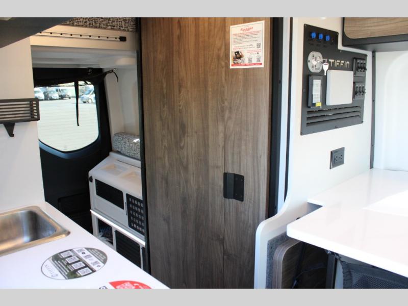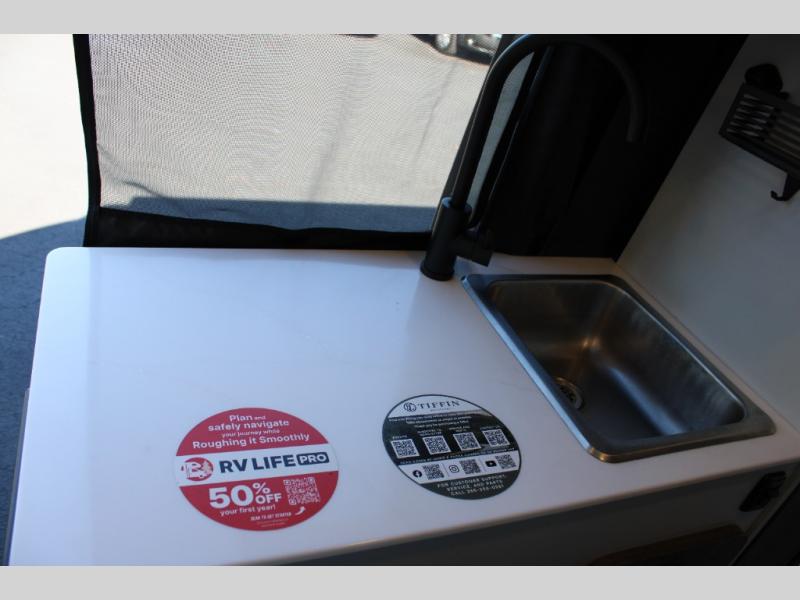 The GH1 by Tiffin is the perfect couples coach that can take you just about anywhere you dream to go. The all-wheel drive chassis is equipped with a Fox Shock suspension package so that you can handle any type of terrain. You will enjoy on-board solar, climate controls with wall-mounted thermostat that features a built-in temperature sensor to keep you comfortable so you can go off the beaten path and stay awhile. Solid surface countertops are easy to clean and the Premium hardwood Plywood with high-pressure laminate lower cabinets pairs nicely with the grey nickel plate thermoplastic polyolefin flooring. Enjoy cooking meals using the portable single-burner induction cooktop and 12-volt 3.1 cu. ft. refrigerator freezer with an integrated whiteboard for your perishables. You are going to love traveling in this class B diesel adventure van that will take you anywhere, even a little off-road!