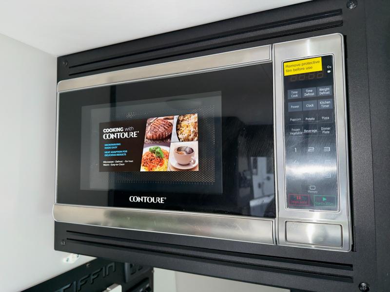 The Tiffin GH2 Class B Diesel motorhomes feature cutting-edge technology, including a 3,000-watt Victron pure sine wave inverter/charger with smart shunt for accurate state-of-charge tracking and a Victron touchscreen control panel with solar controller and tank sensors. The integrated SeeLevel tank monitor keeps you informed about your fuel and water levels. Sleek, heated, and electrically adjustable side-view mirrors provide effortless convenience, and exquisite premium hardwood plywood with high-pressure laminate lower cabinets adds a touch of sophistication, plus, the dazzling interior multicolor accent lighting creates a vibrant and inviting atmosphere. In addition, the sumptuous heated leather seats with electronic controls offer unparalleled comfort, and the Mercedes-Benz MBUX multimedia system features a 10.25” touchscreen for seamless connectivity. Further, the kitchen offers a versatile microwave/air fryer combo, and a 12-volt roof vent fan provides culinary flexibility and ventilation.