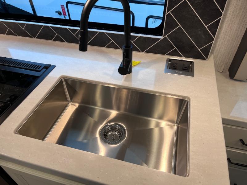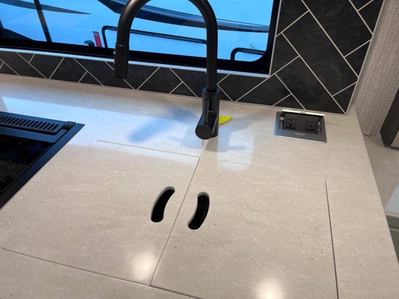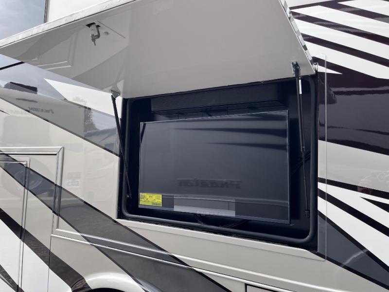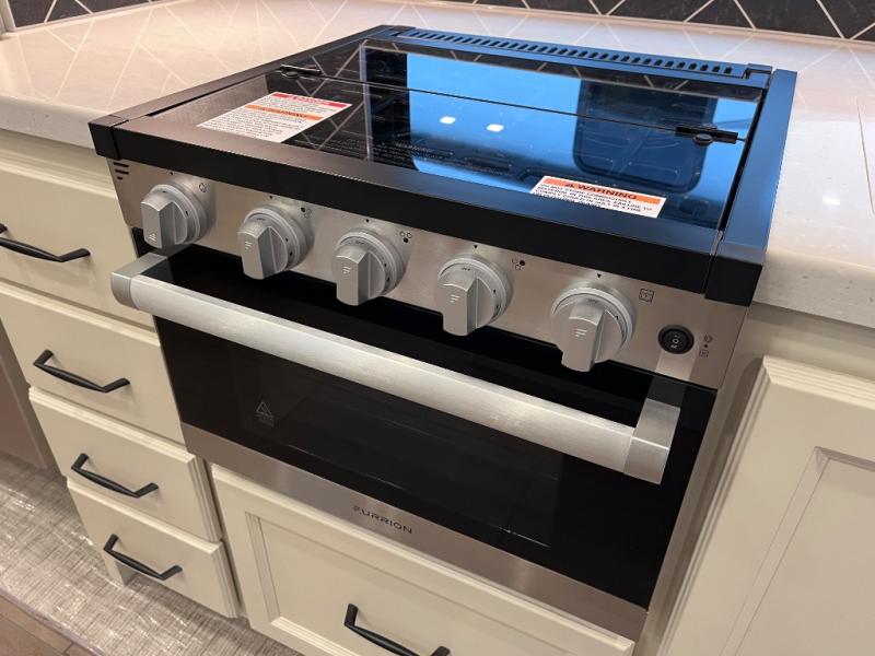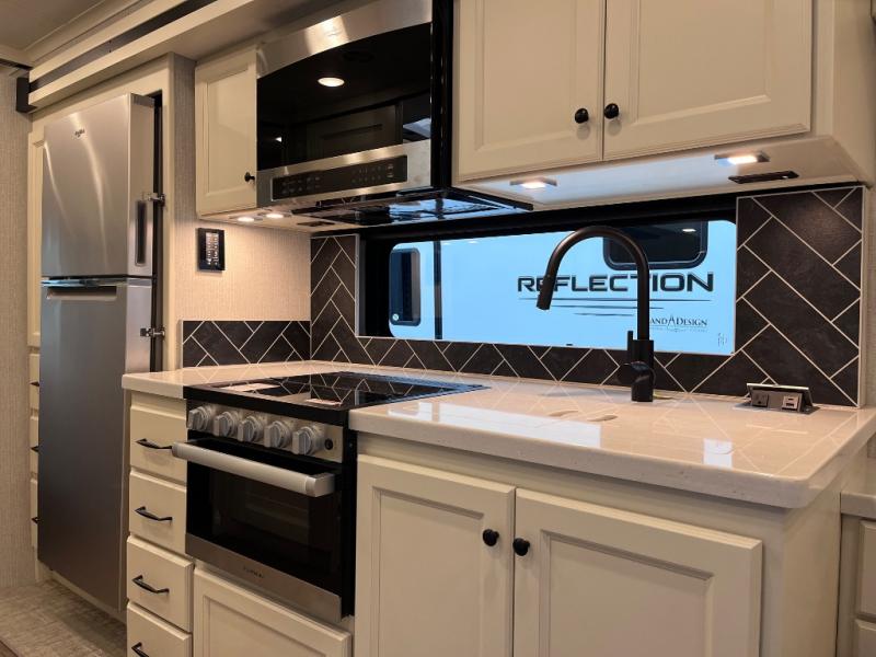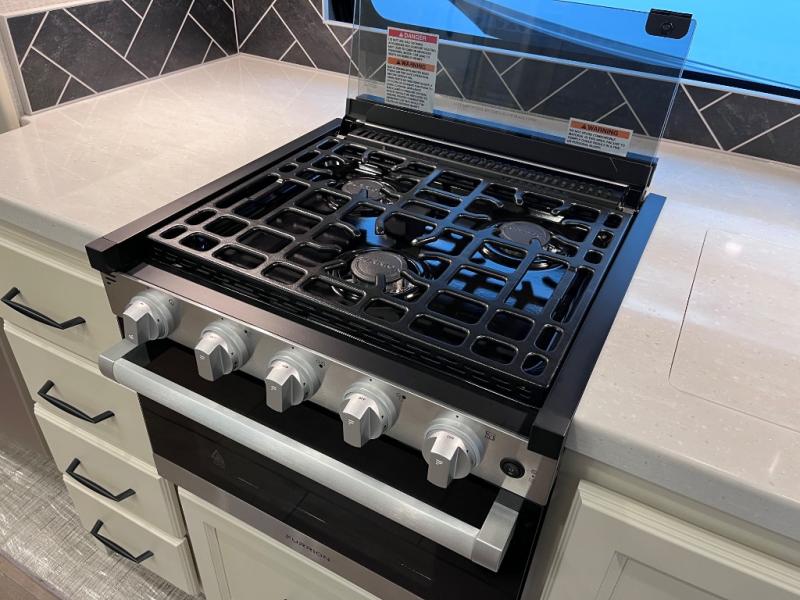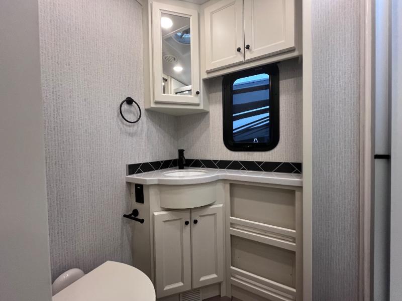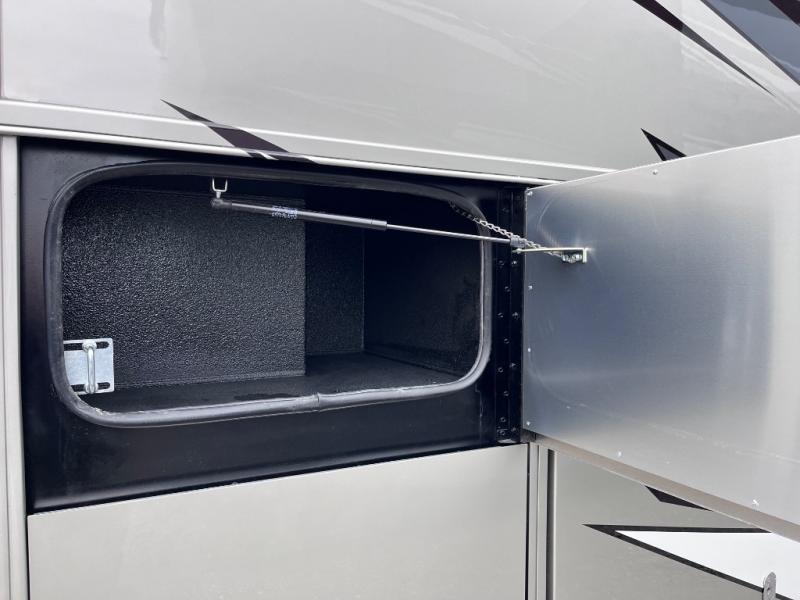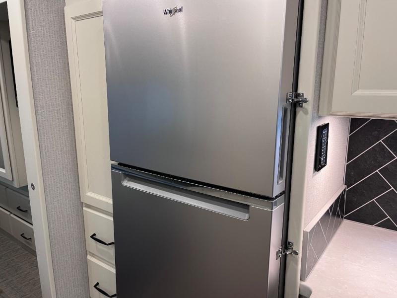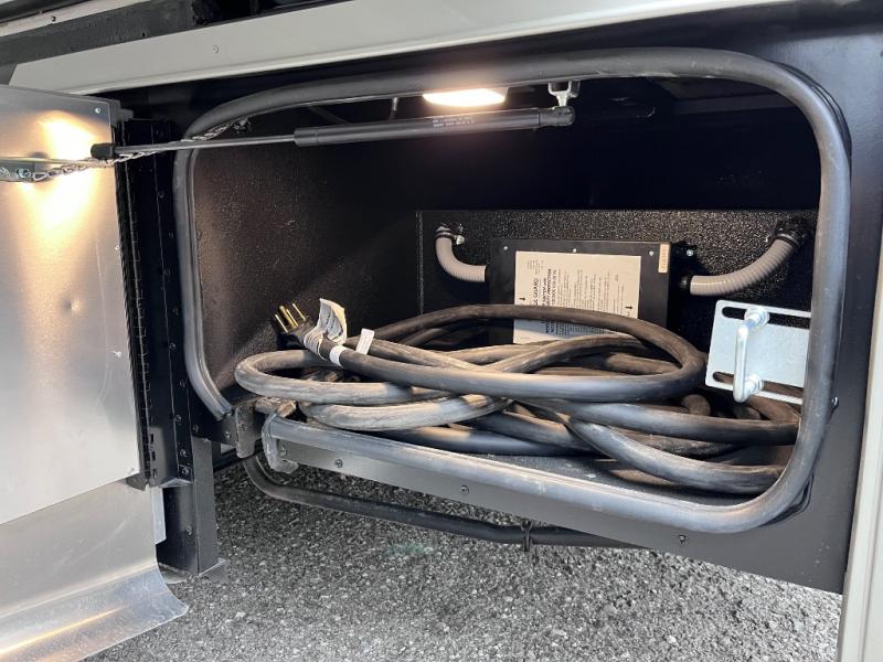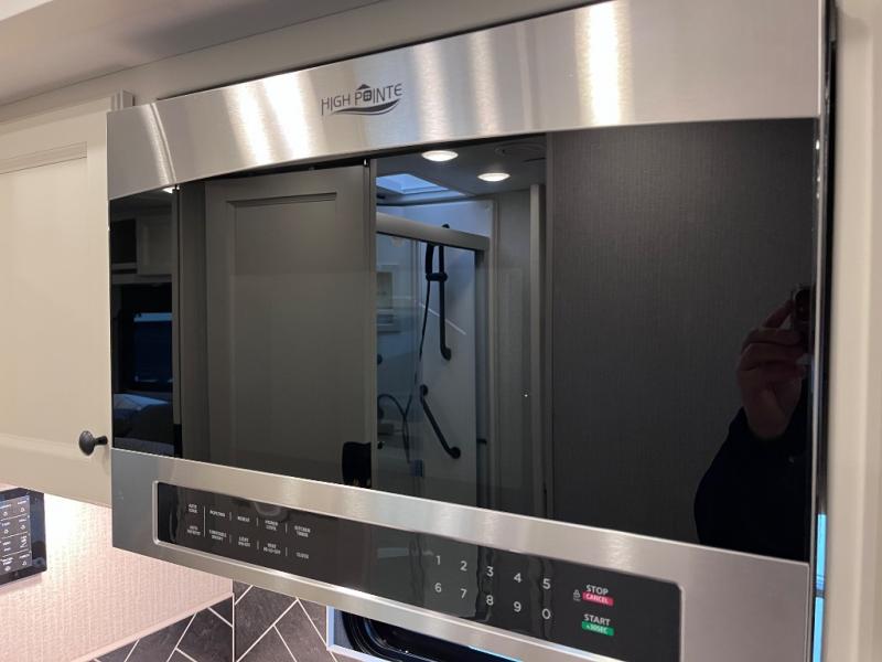You'll love how easy it will be to maneuver this coach since it comes in at only 32-feet in length! The full-wall slide will open up your space so you can cook on the three burner range and dine at the booth dinette-sleeper. There is also a residential refrigerator and a pantry for food storage plus a bedroom wardrobe with drawers within the slide to keep your thing tidy. Once dinner is cleaned up, you can relax on the theater seating across from the wall mounted TV, or head outdoors to visit under the Girard power awning with LED lights. You're sure to get a great night's rest on the king bed, while your guests sleep on the booth dinette-sleeper. And if you're needing additional sleeping space, just choose the optional drop-down cab bunk!